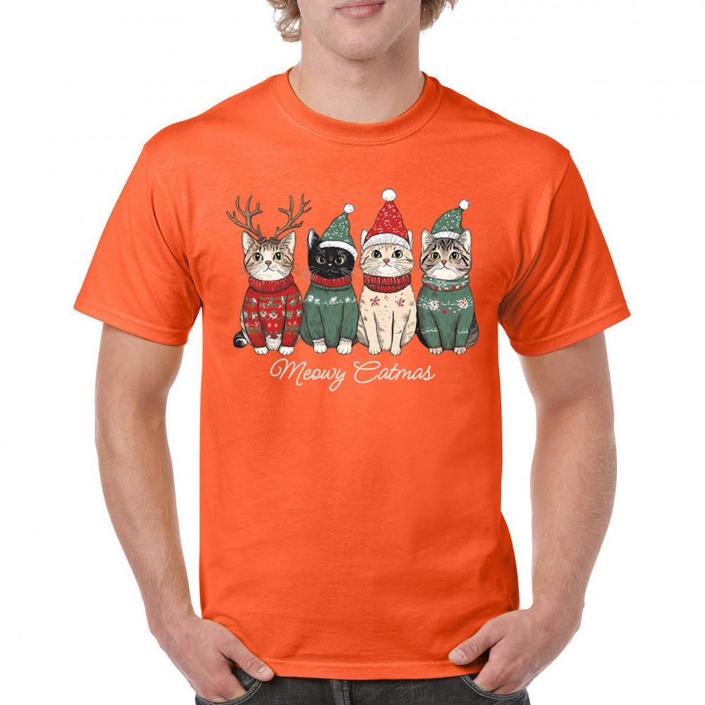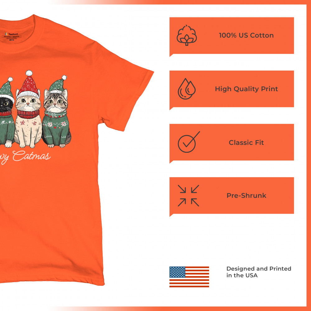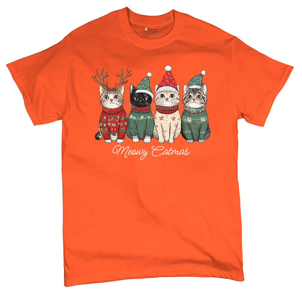 Cute Meowy Catmas design with festive kittens, perfect for cat lovers wanting a cozy holiday graphic and fun Christmas pet theme.