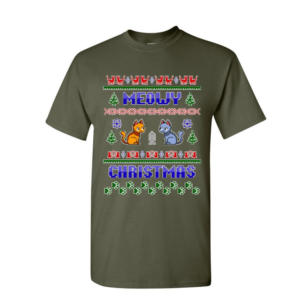 MEOWY CHRISTMAS UGLY SWEATER t-shirt cat kitten purr merry xmas mens tee shirt military green