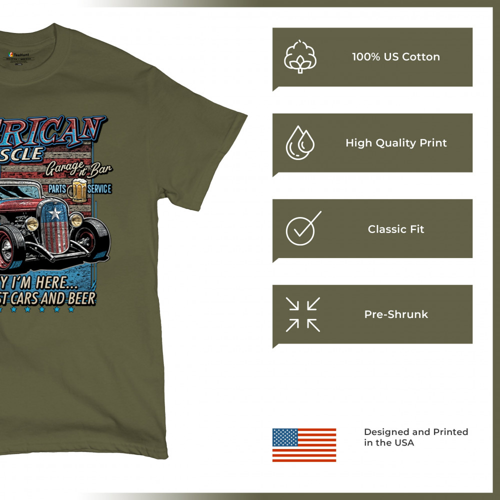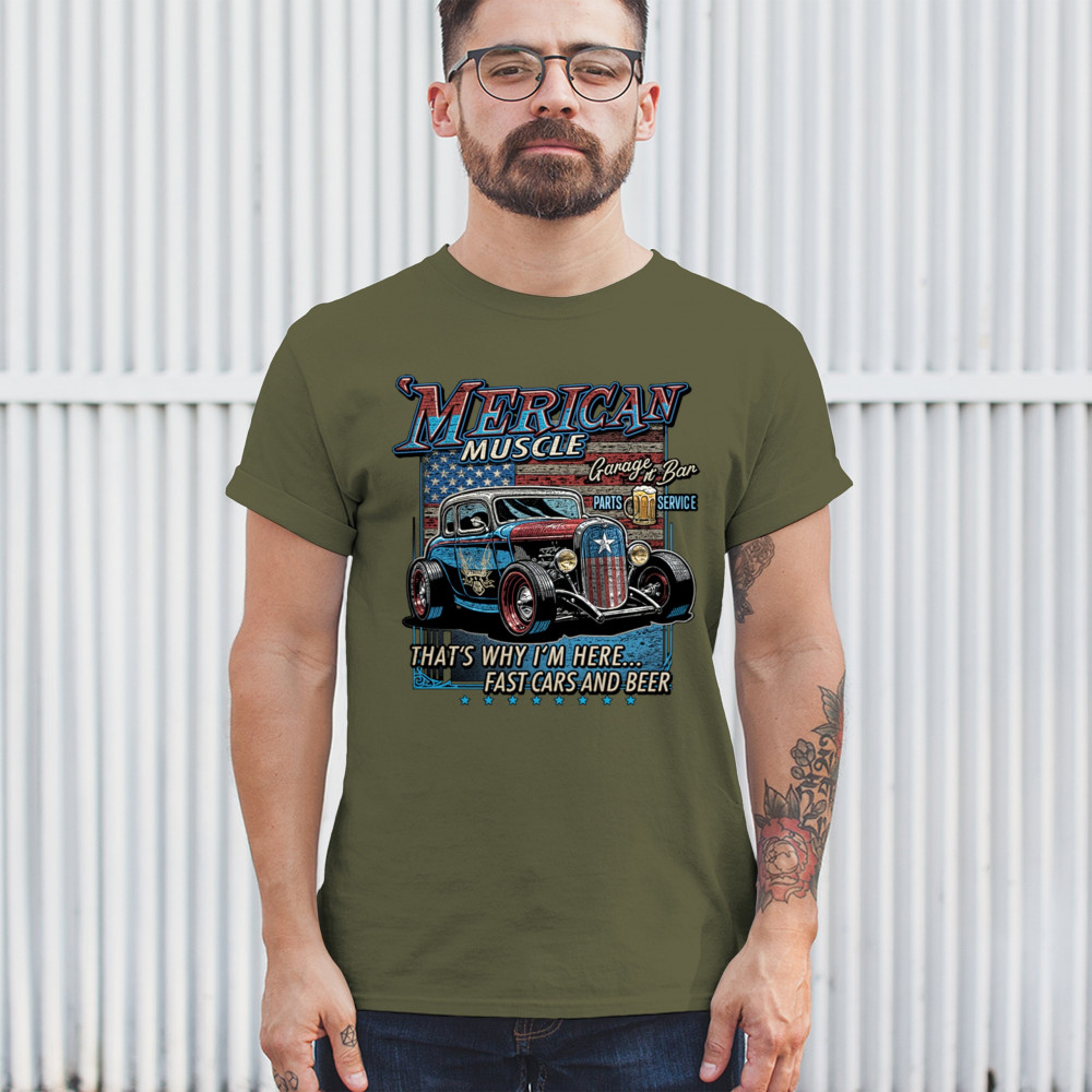 Drive into retro style with 'Merican Muscle, celebrating classic cars and the spirit of American auto excellence.