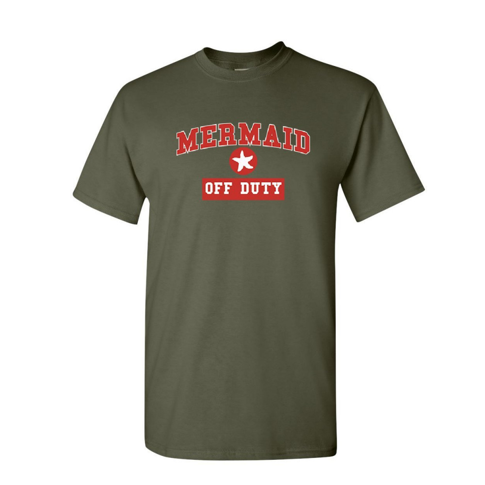 MERMAID OFF DUTY t-shirt funny cute holiday vacation ocean beach mens tee shirt military green