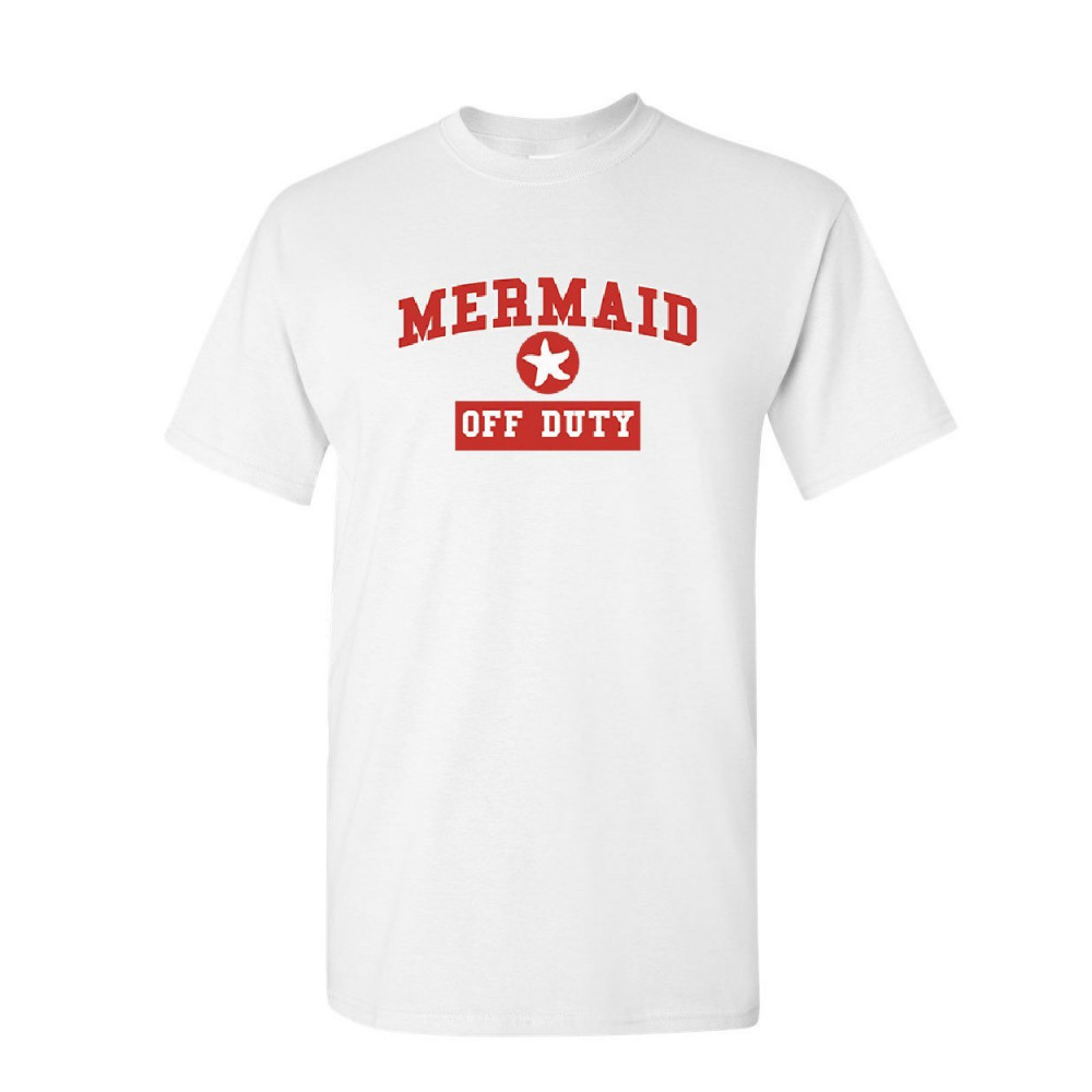 MERMAID OFF DUTY t-shirt funny cute holiday vacation ocean beach mens tee shirt white