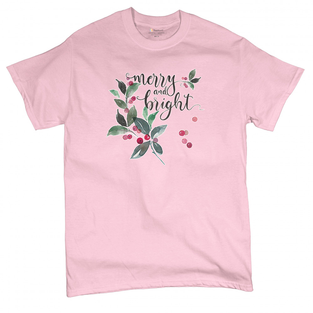 MERRY AND BRIGHT CUTE CHRISTMAS t-shirt jolly santa clause xmas men's tee light pink