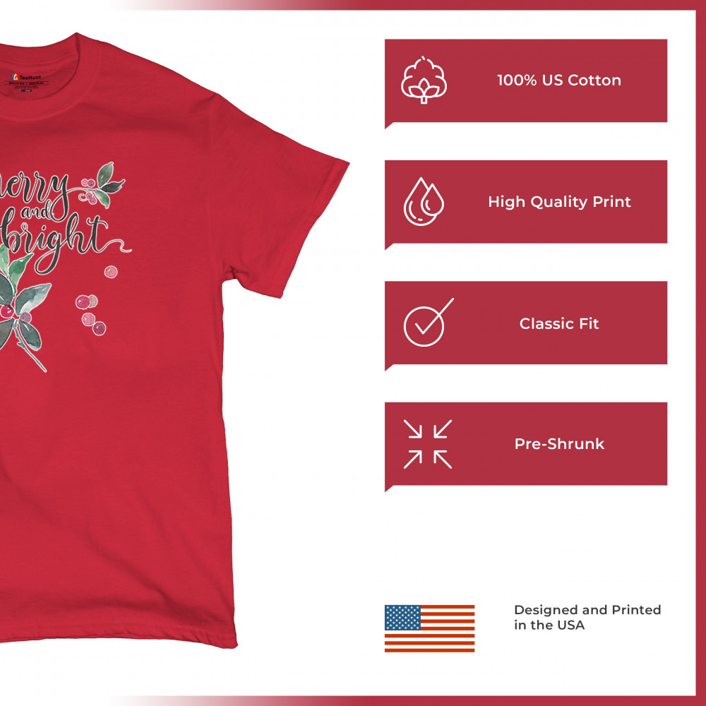 MERRY AND BRIGHT CUTE CHRISTMAS t-shirt jolly santa clause xmas men's tee red
