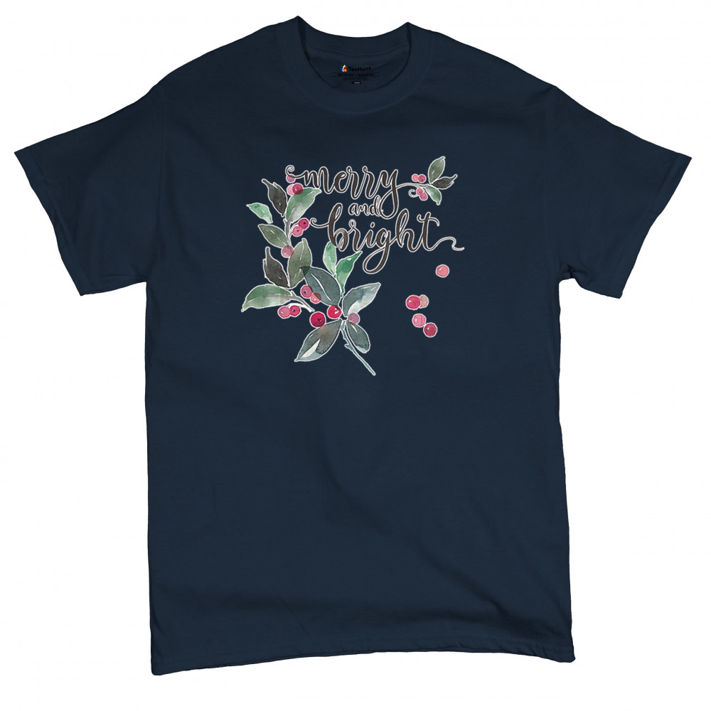 MERRY AND BRIGHT CUTE CHRISTMAS t-shirt jolly santa clause xmas men's tee navy blue
