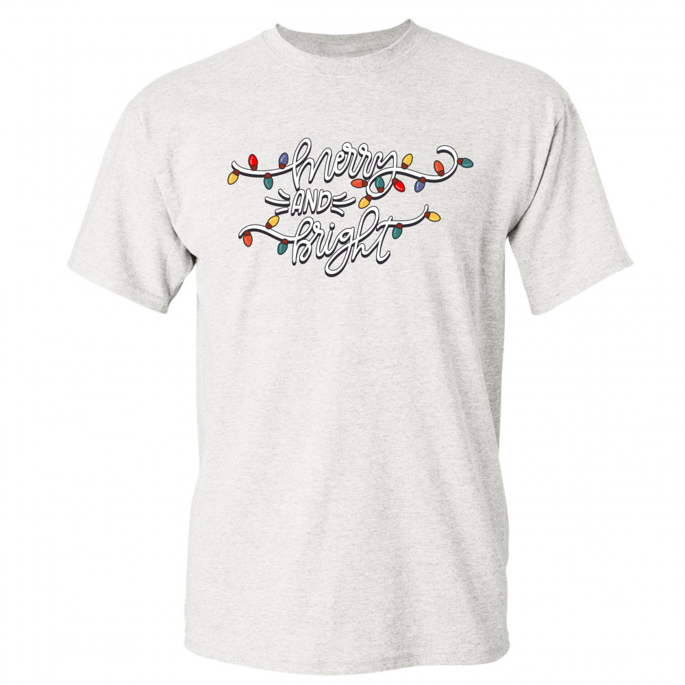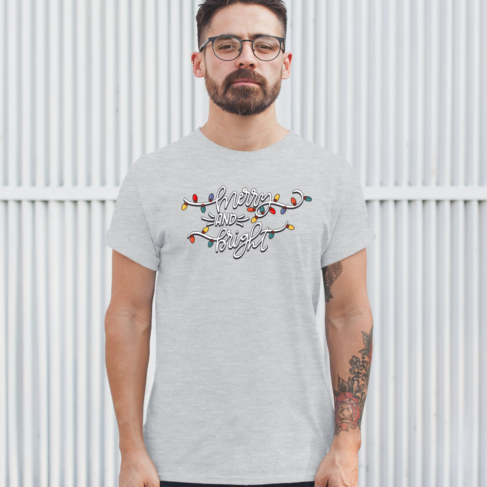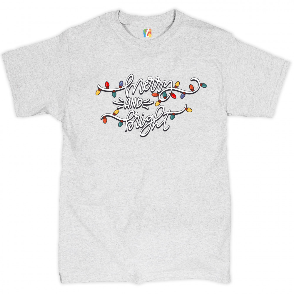 MERRY AND BRIGHT t-shirt christmas eve holiday spirit festive men's tee ash gray