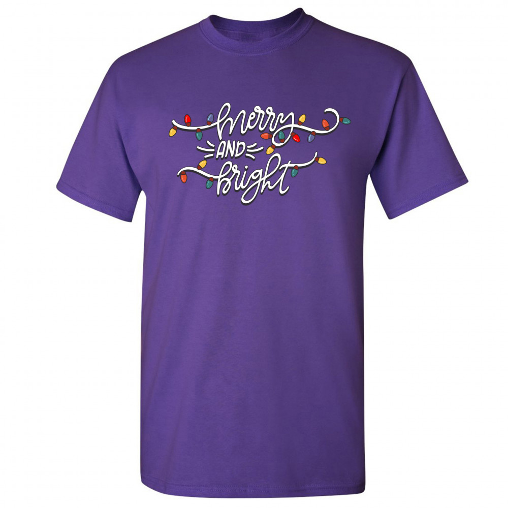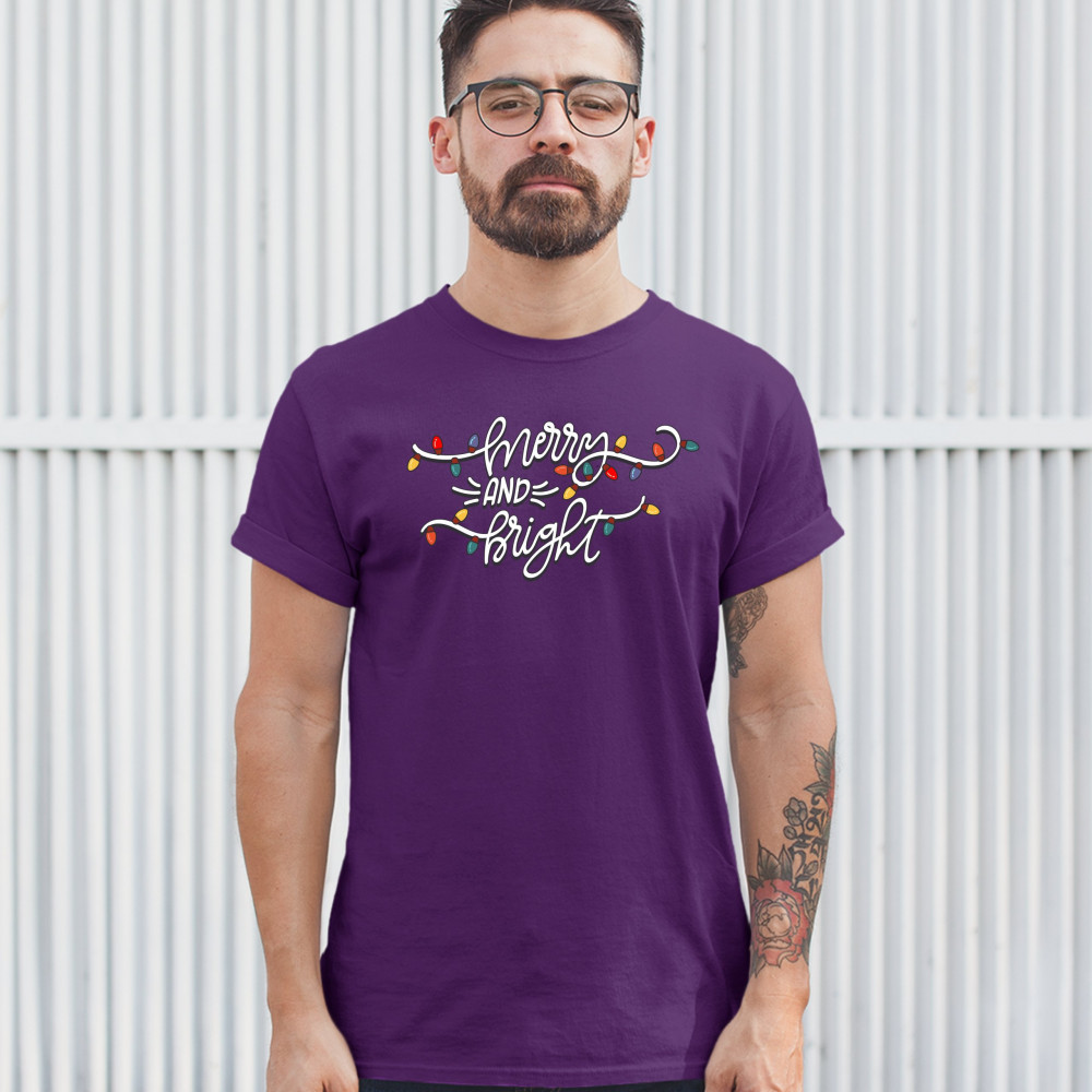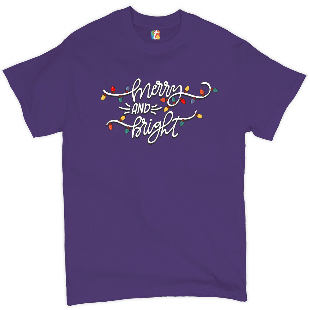 MERRY AND BRIGHT t-shirt christmas eve holiday spirit festive men's tee purple