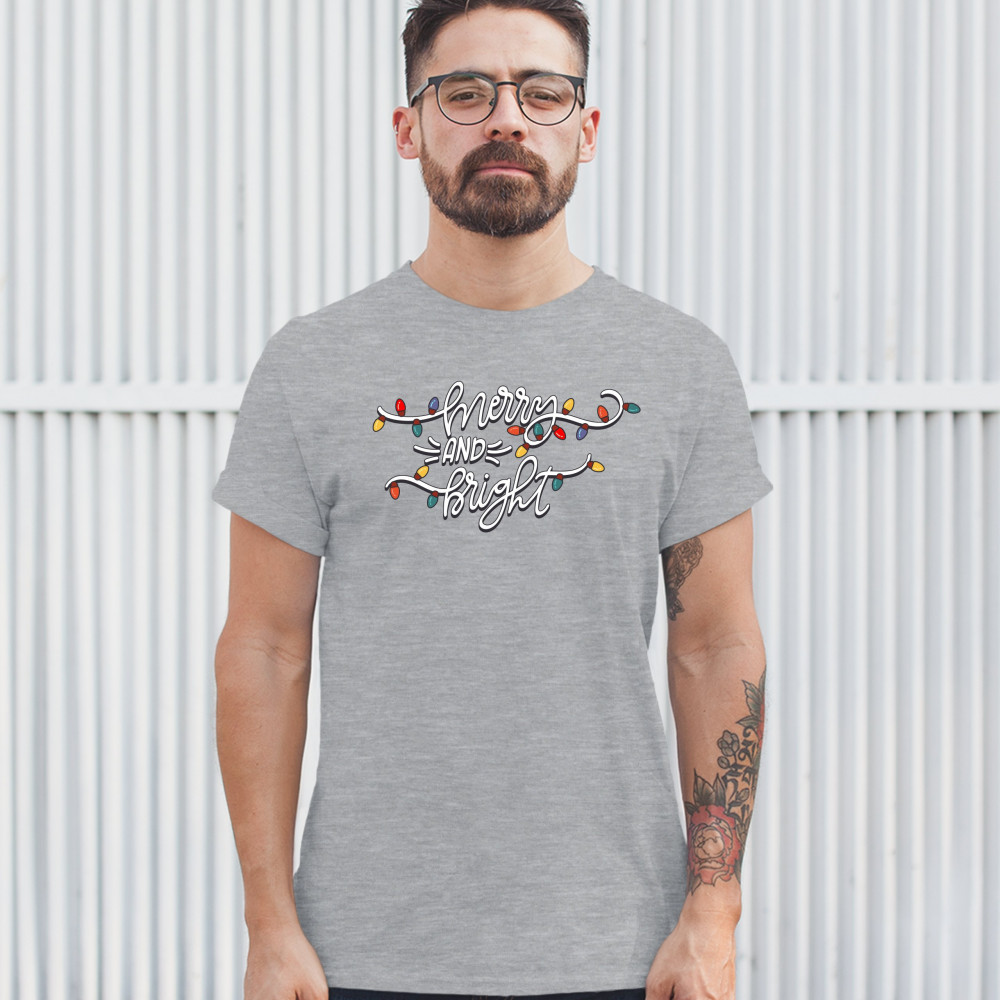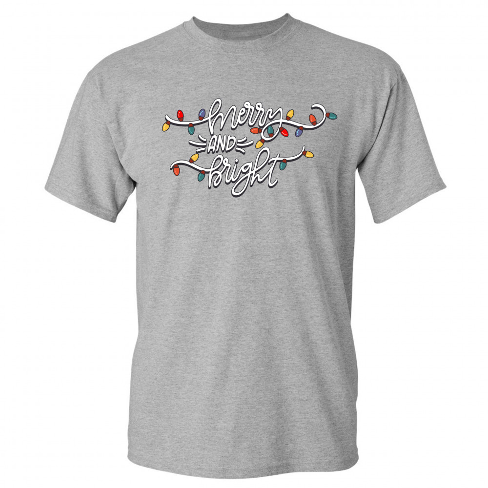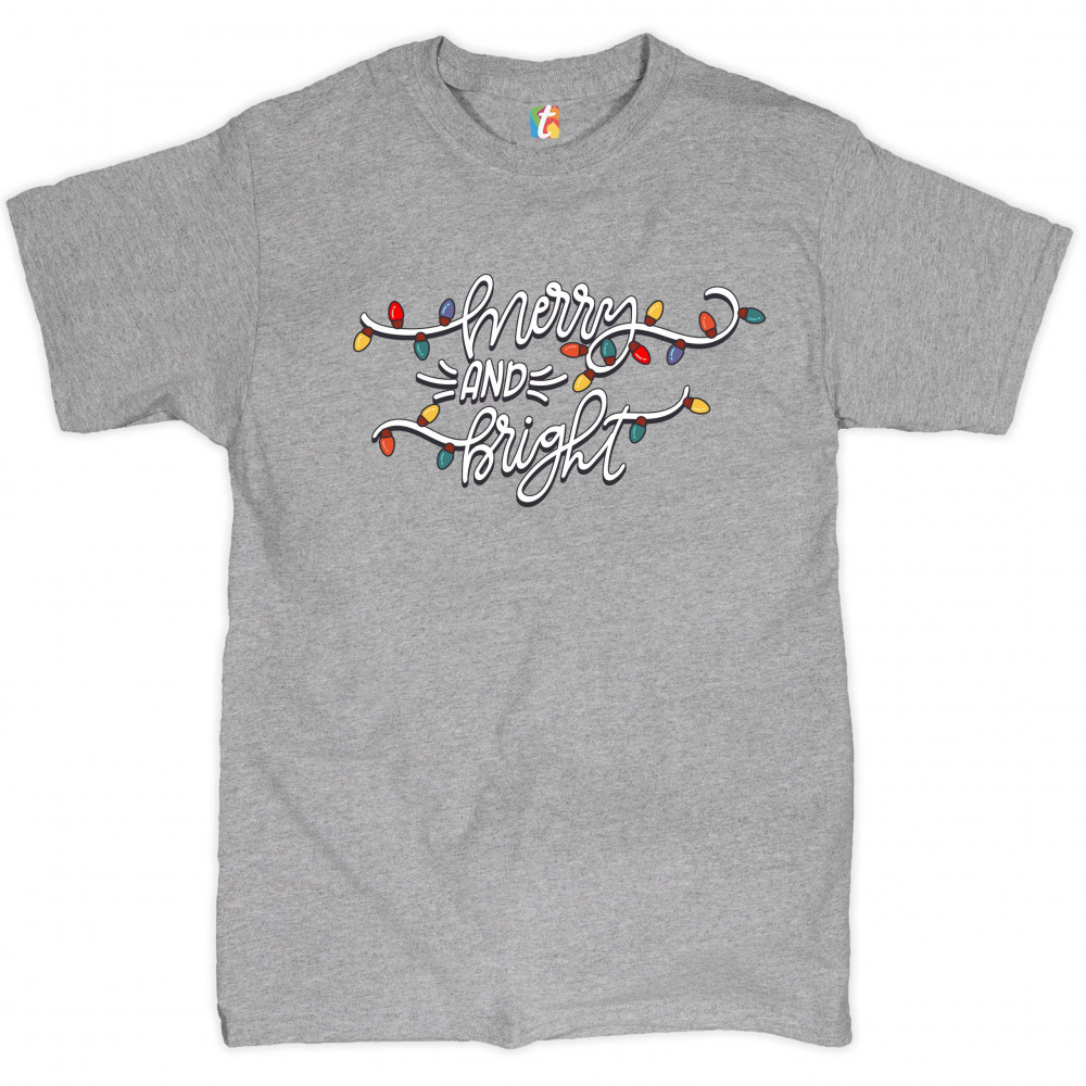 MERRY AND BRIGHT t-shirt christmas eve holiday spirit festive men's tee gray