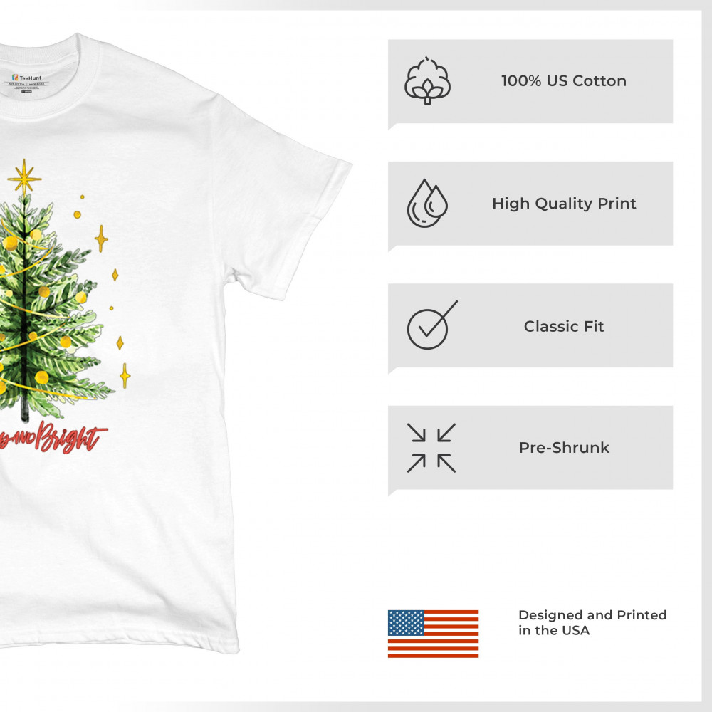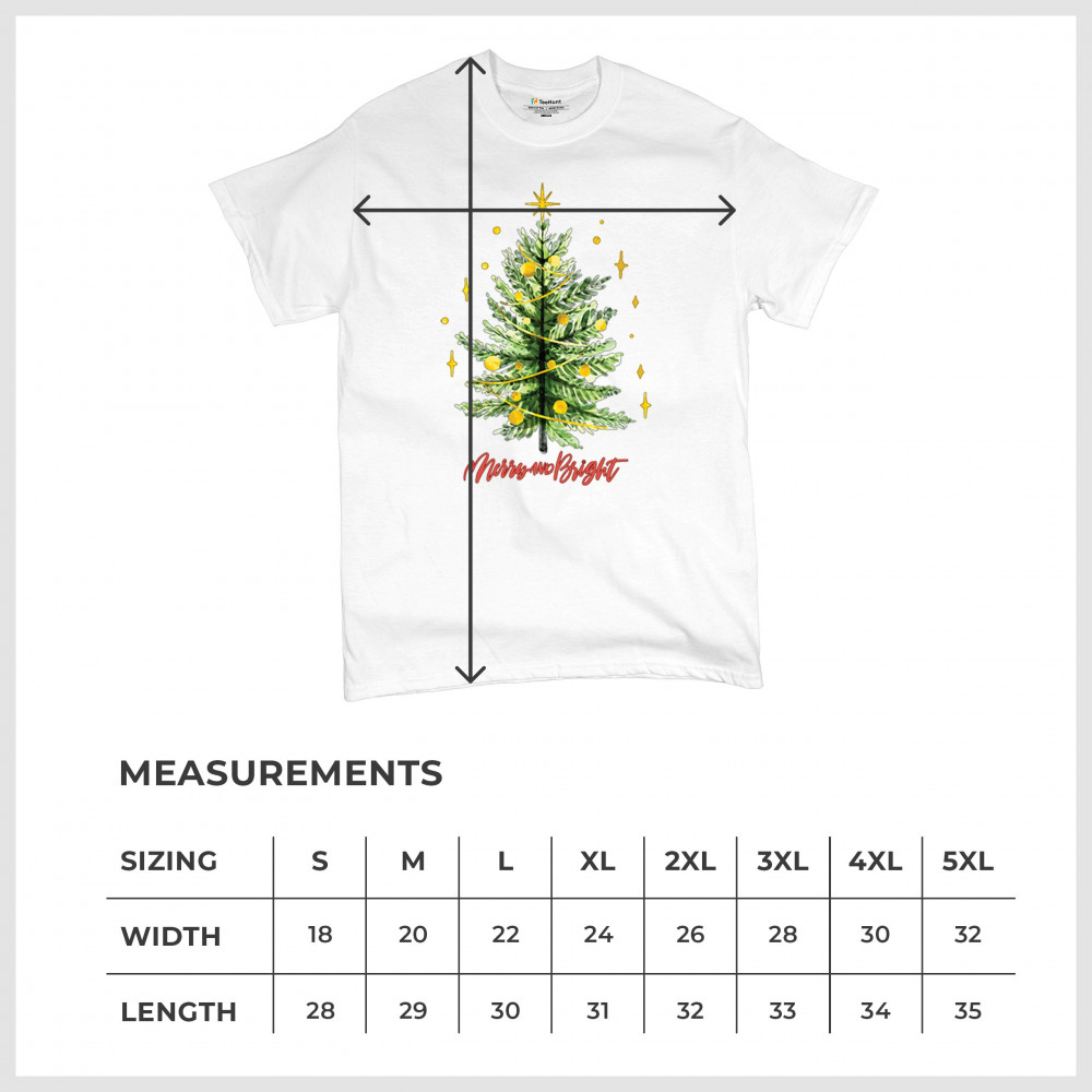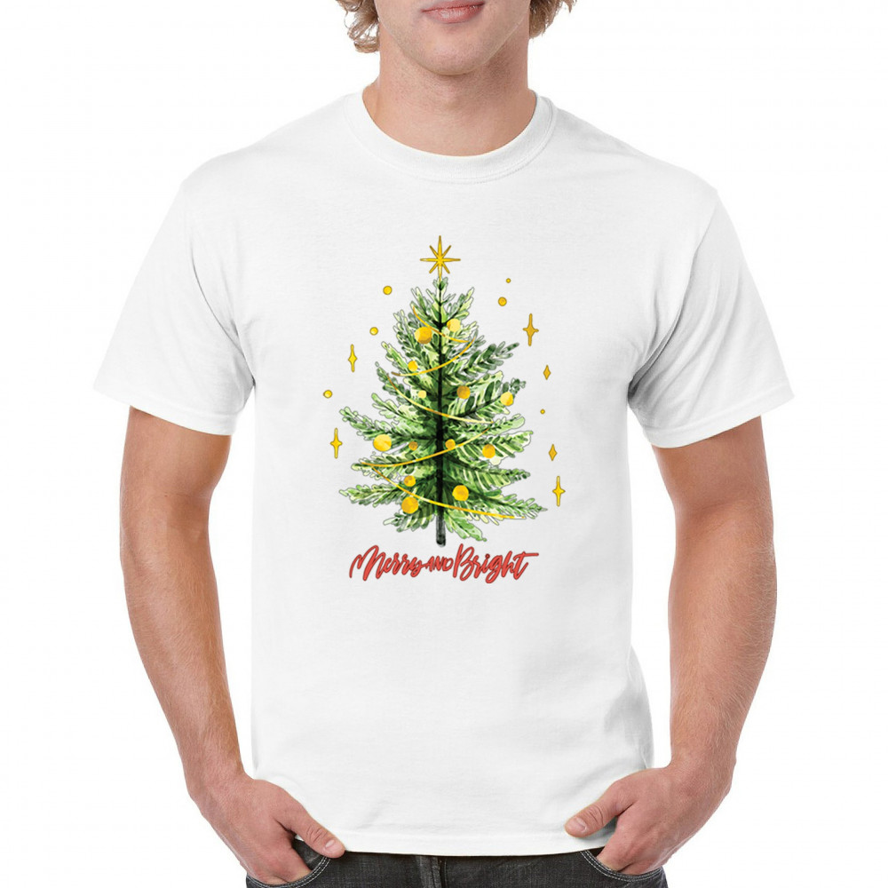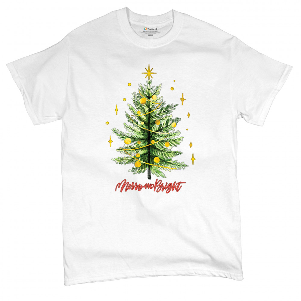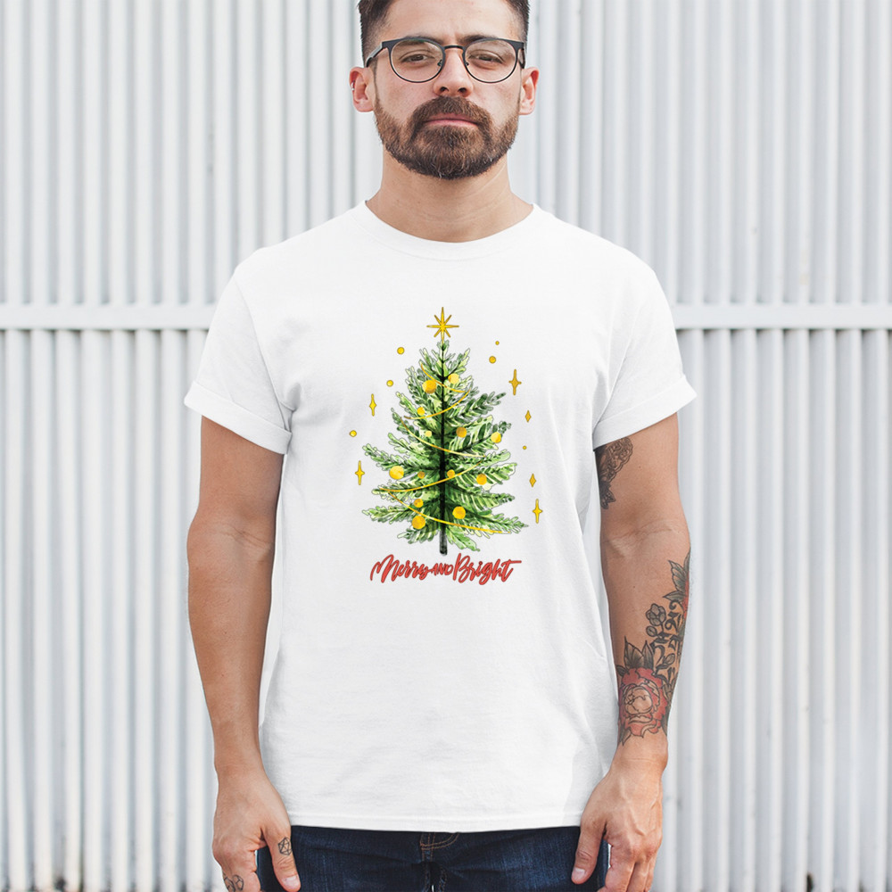 Festive “Merry and Bright†shirt featuring a joyful Christmas tree. Perfect for holiday gatherings, office parties, or Secret Santa gifts.