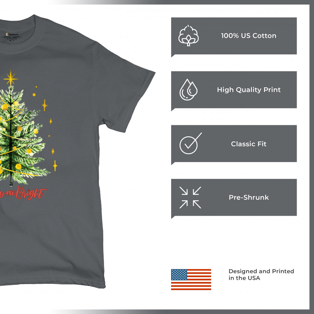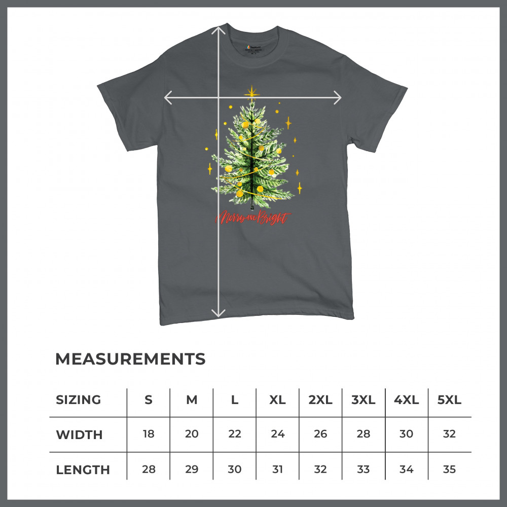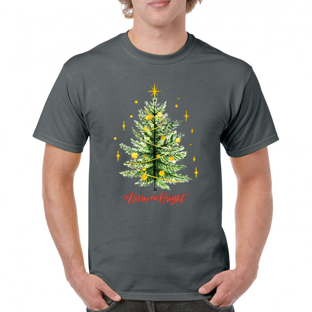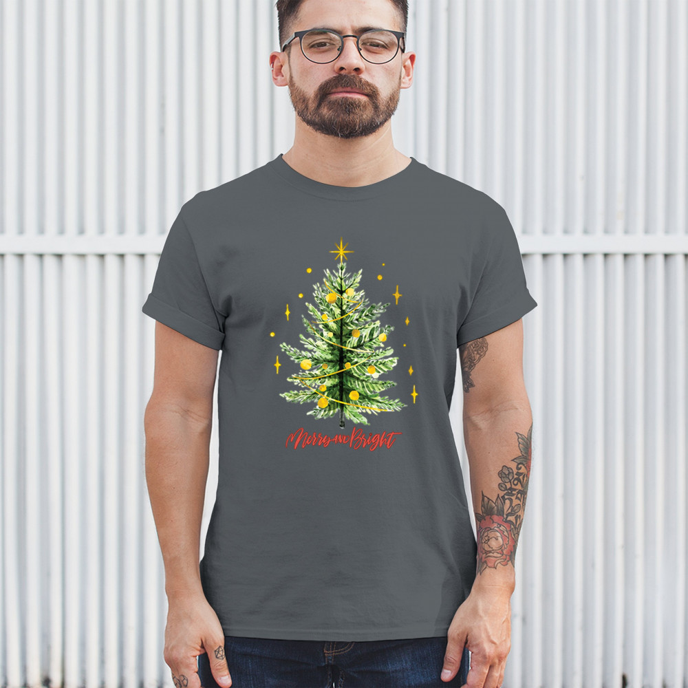 Festive “Merry and Bright†shirt featuring a joyful Christmas tree. Perfect for holiday gatherings, office parties, or Secret Santa gifts.