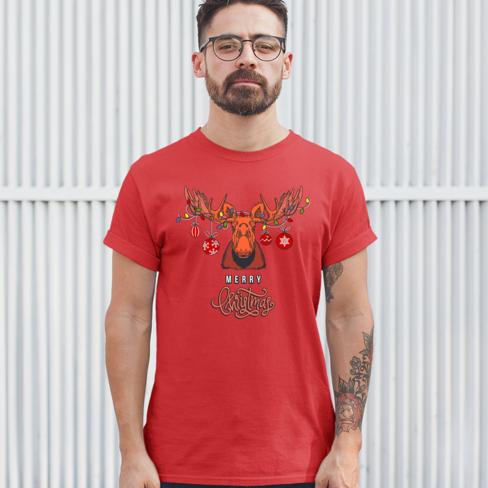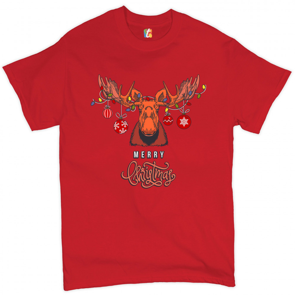 MERRY CHRISTMAS BUCK t-shirt reindeer rudolph holiday spirit men's tee red