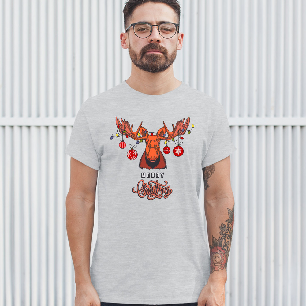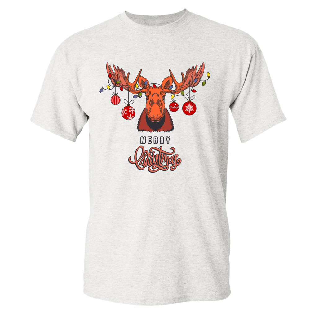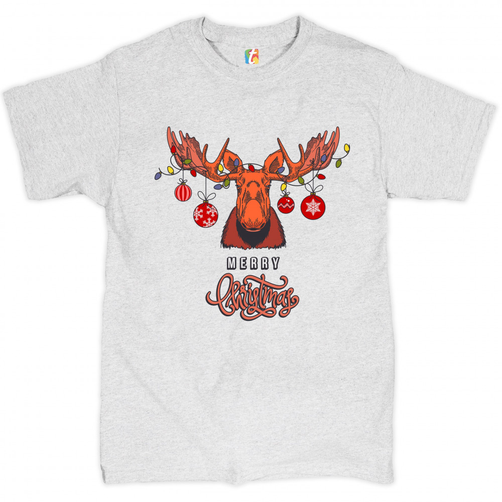 MERRY CHRISTMAS BUCK t-shirt reindeer rudolph holiday spirit men's tee ash gray