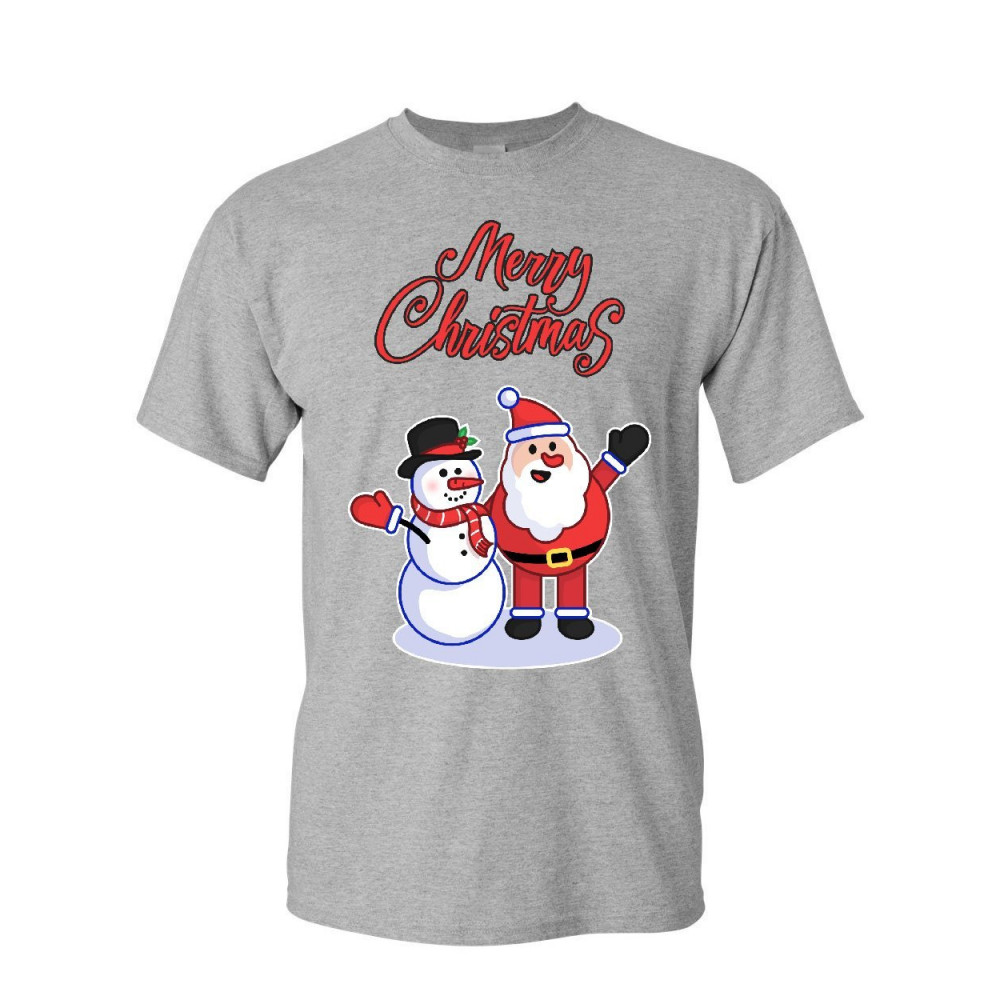 MERRY CHRISTMAS SANTA AND SNOWMAN merry christmas santa snowman hug t-shirt xmas holiday spirit mens tee shirt sport gray