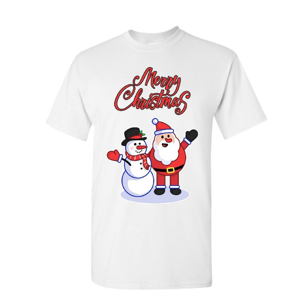 MERRY CHRISTMAS SANTA AND SNOWMAN merry christmas santa snowman hug t-shirt xmas holiday spirit mens tee shirt white