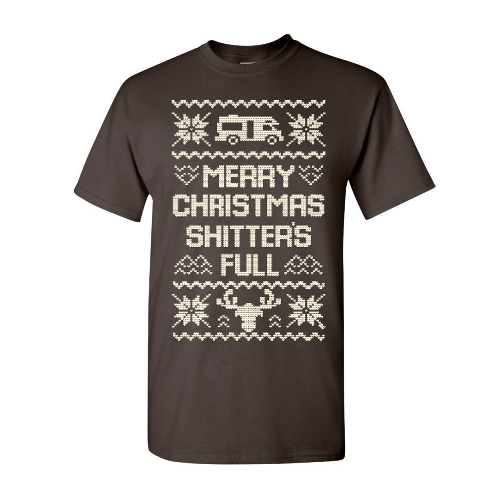 MERRY CHRISTMAS SHITTER'S FULL t-shirt ugly sweatshirt xmas cotton tee brown
