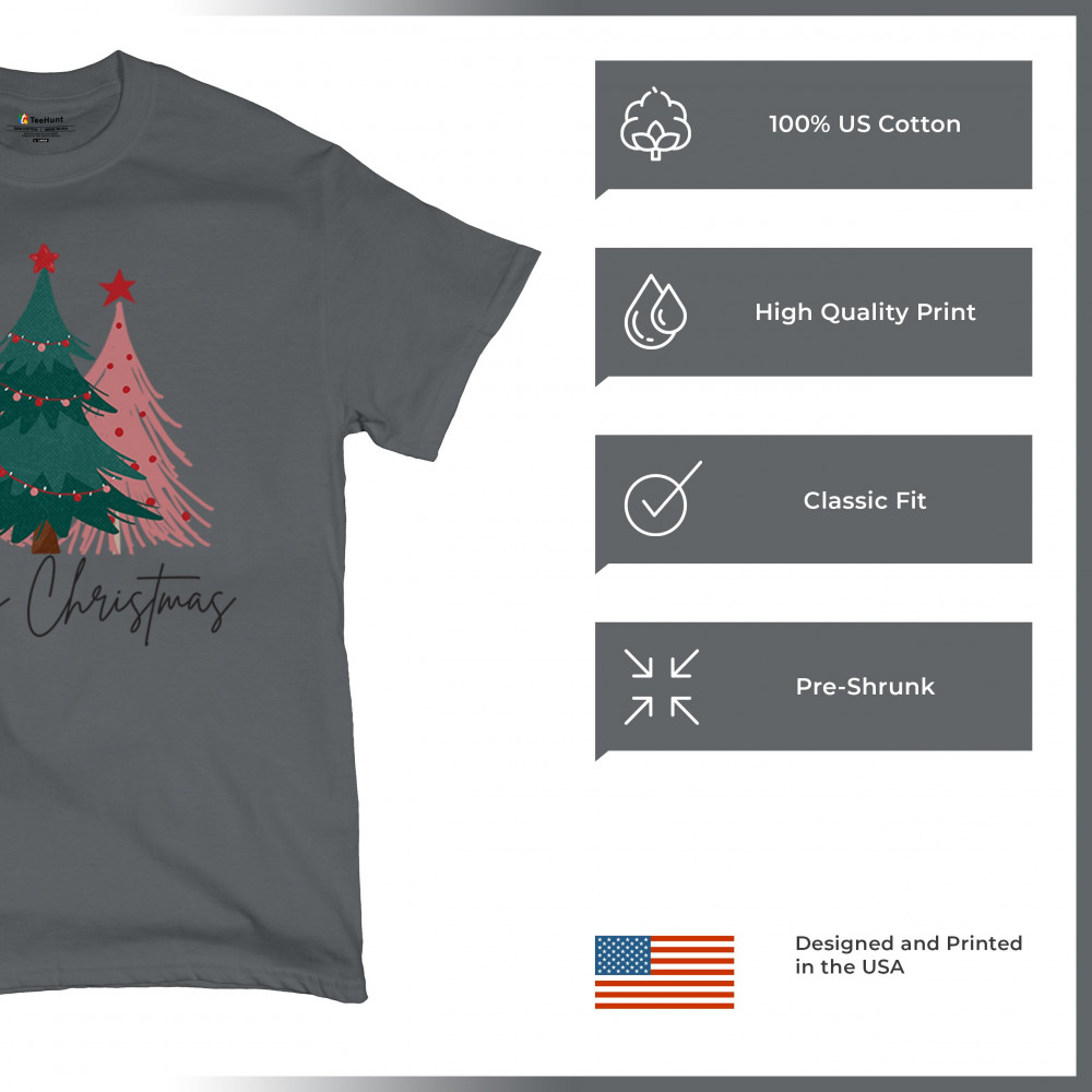 Festive pine tree design with lights, perfect for Christmas lovers, winter vibes, tree farm fans, and holiday gatherings.