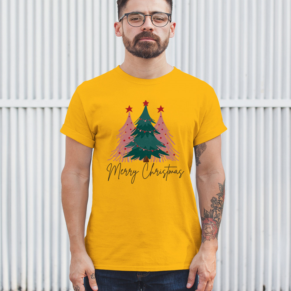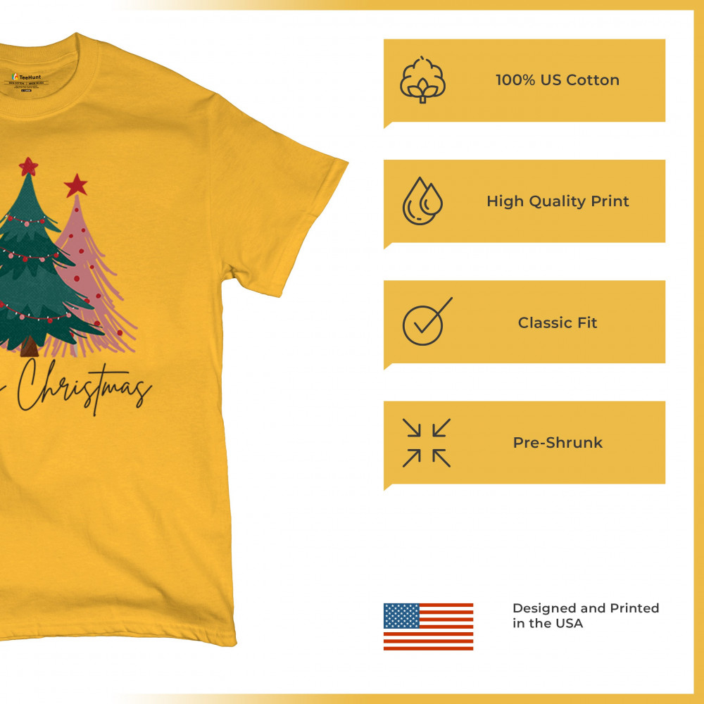 Festive pine tree design with lights, perfect for Christmas lovers, winter vibes, tree farm fans, and holiday gatherings.