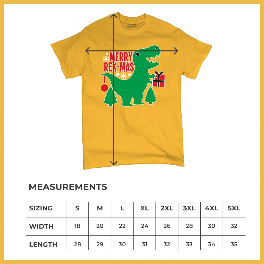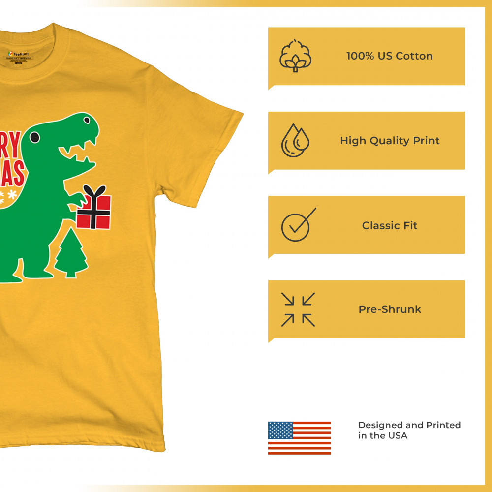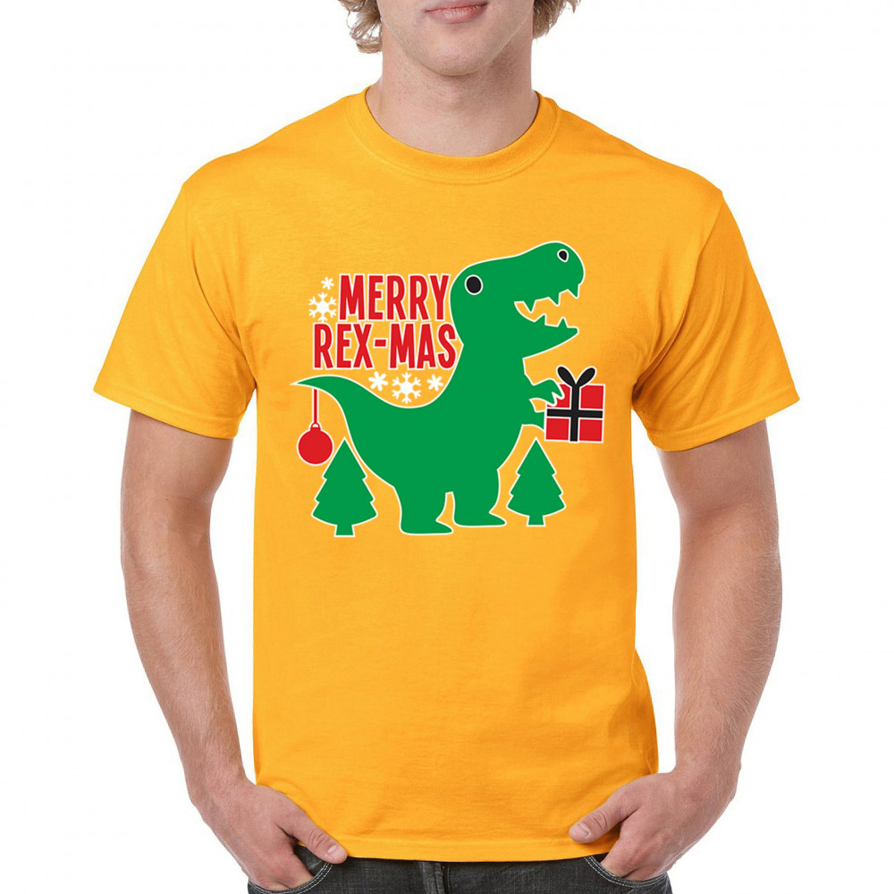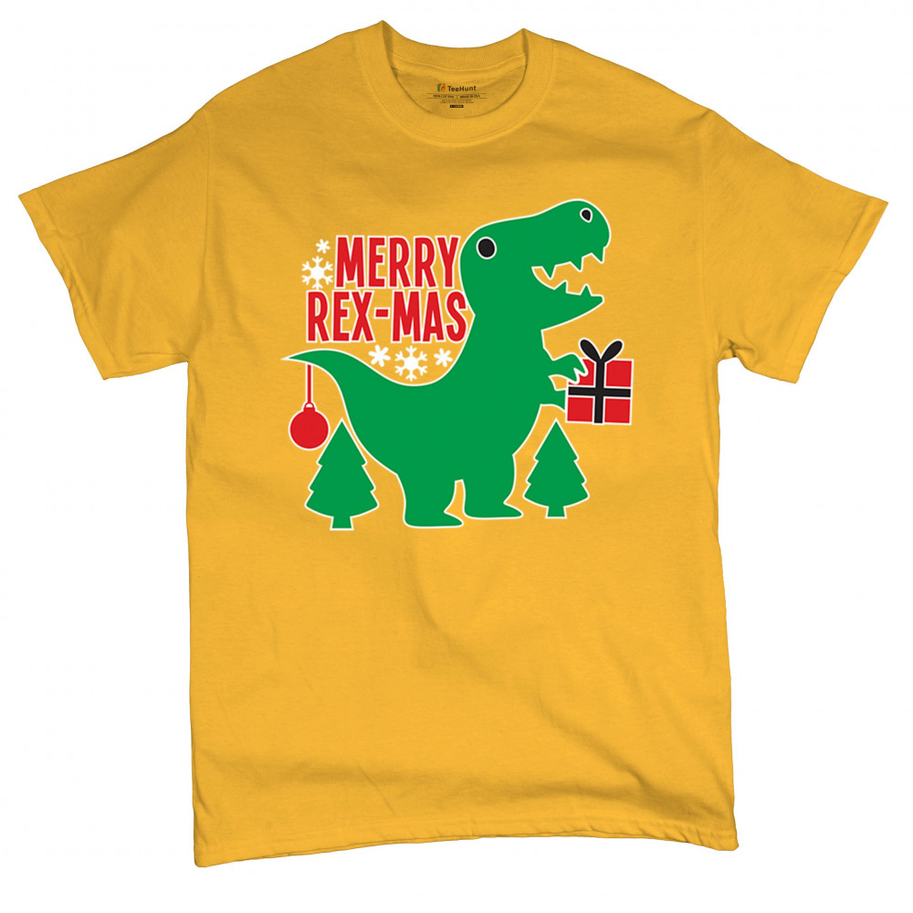 Merry Rex-Mas dinosaur Christmas design with a cute T-Rex, gift, and festive holiday details. Perfect for fun family celebrations and cheerful winter style.