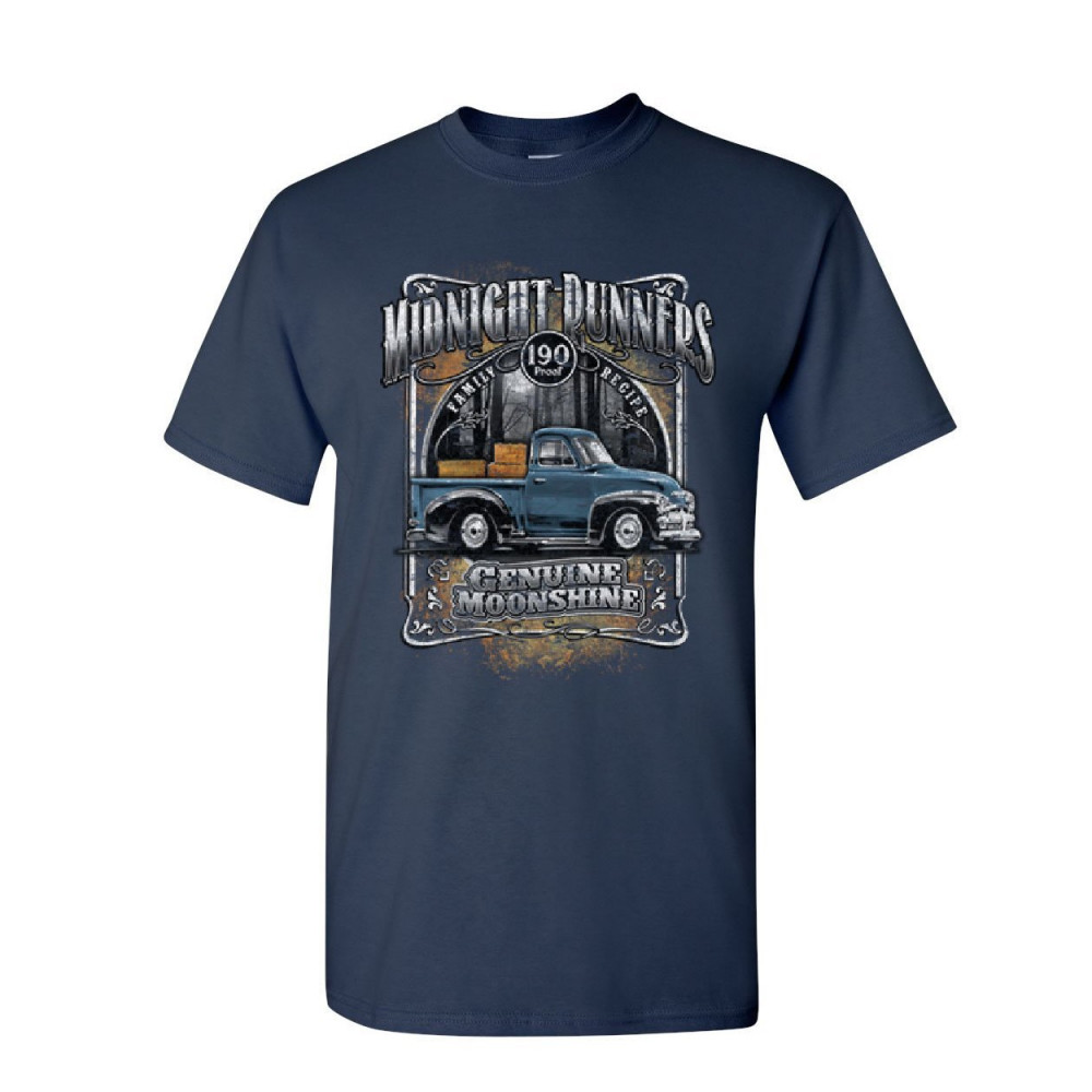 MIDNIGHT RUNNERS t-shirt genuine moonshine drinking whisky booze mens tee shirt navy blue