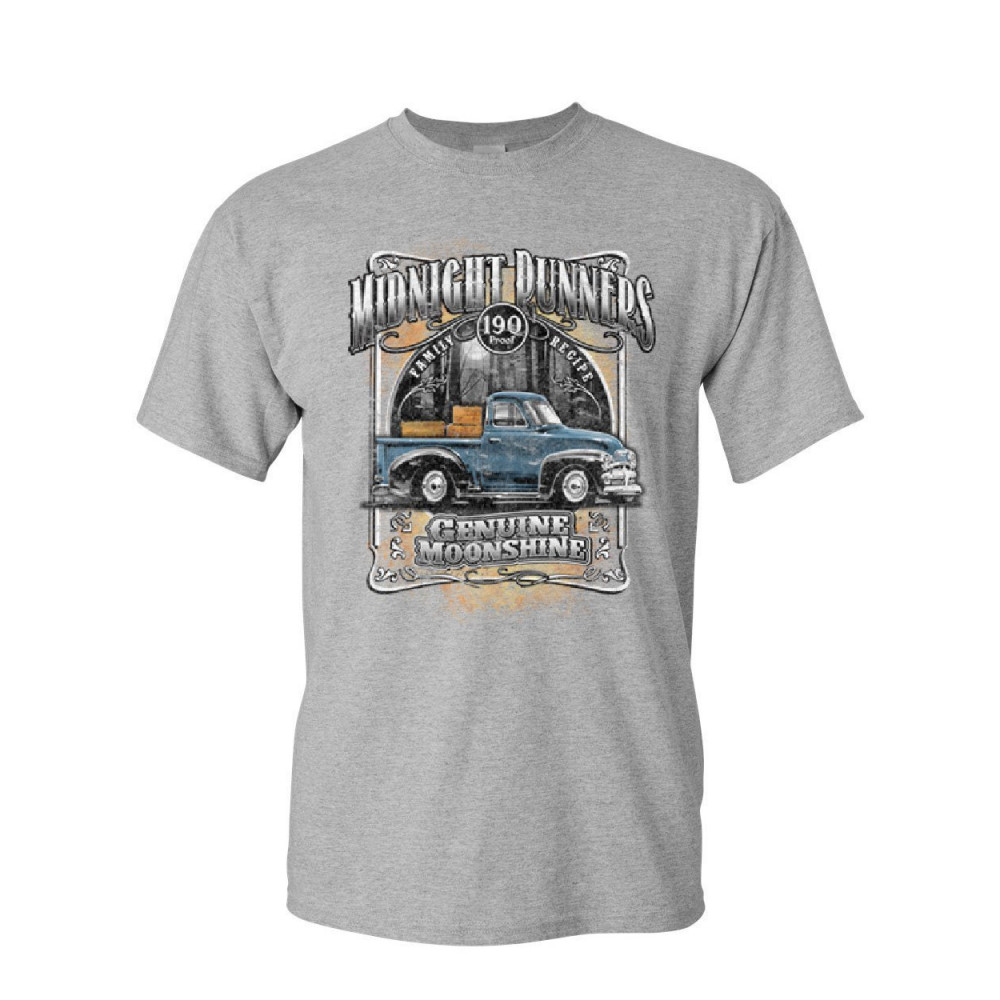 MIDNIGHT RUNNERS t-shirt genuine moonshine drinking whisky booze mens tee shirt sport gray