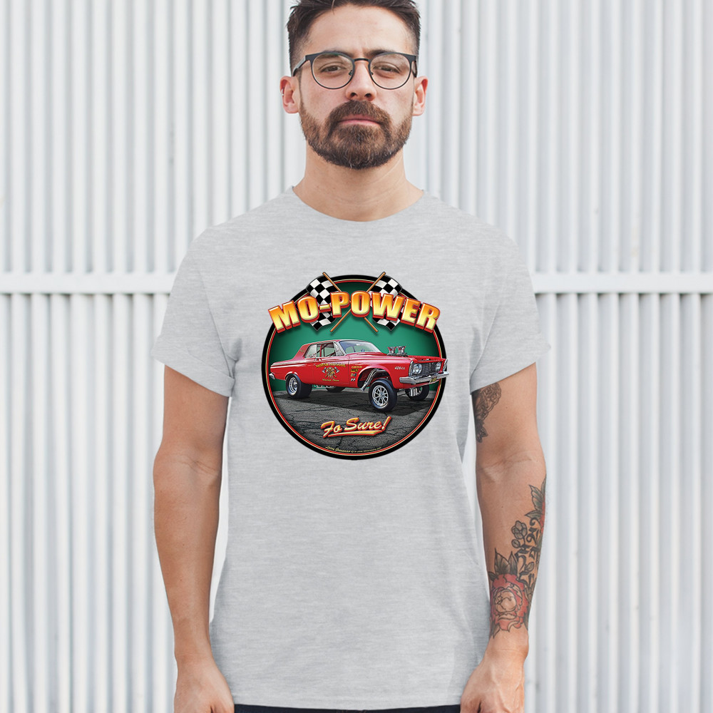 MO-POWER FO SURE! t-shirt american muscle car racing route 66 men's tee ash gray