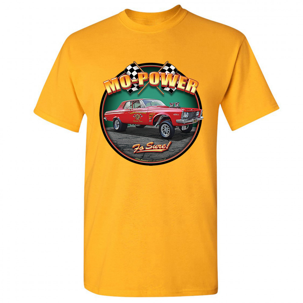 MO-POWER FO SURE! t-shirt american muscle car racing route 66 men's tee yellow
