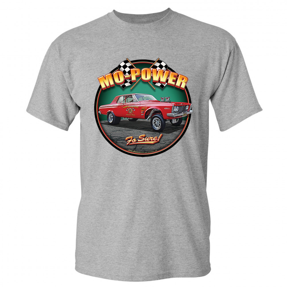 MO-POWER FO SURE! t-shirt american muscle car racing route 66 men's tee gray