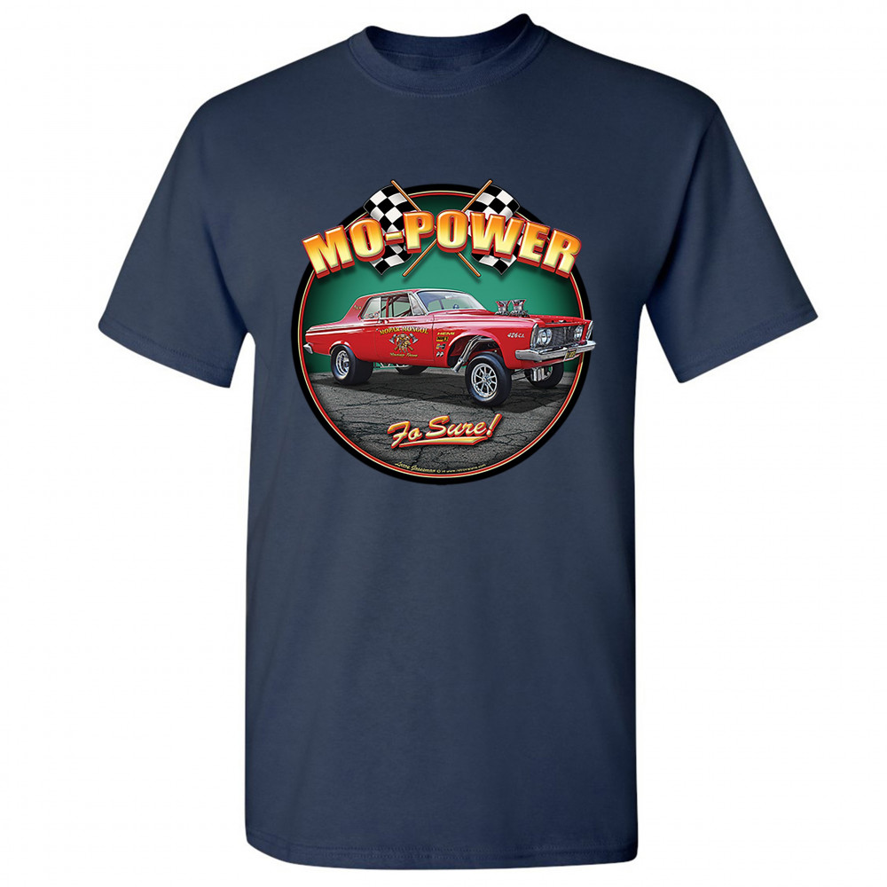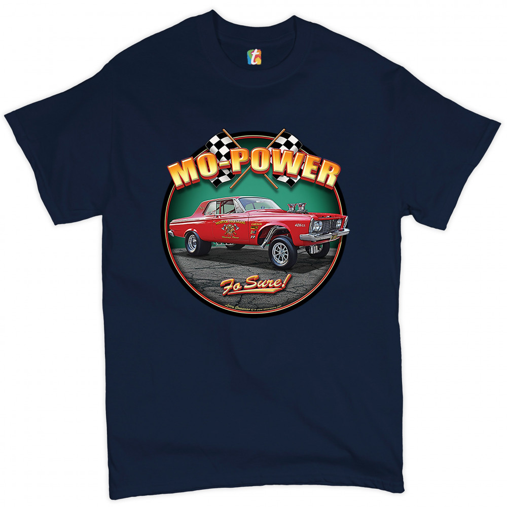 MO-POWER FO SURE! t-shirt american muscle car racing route 66 men's tee navy blue