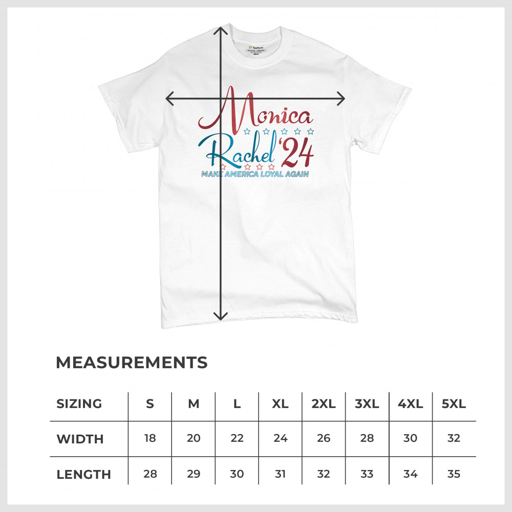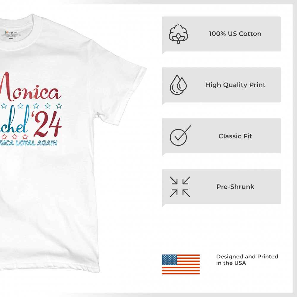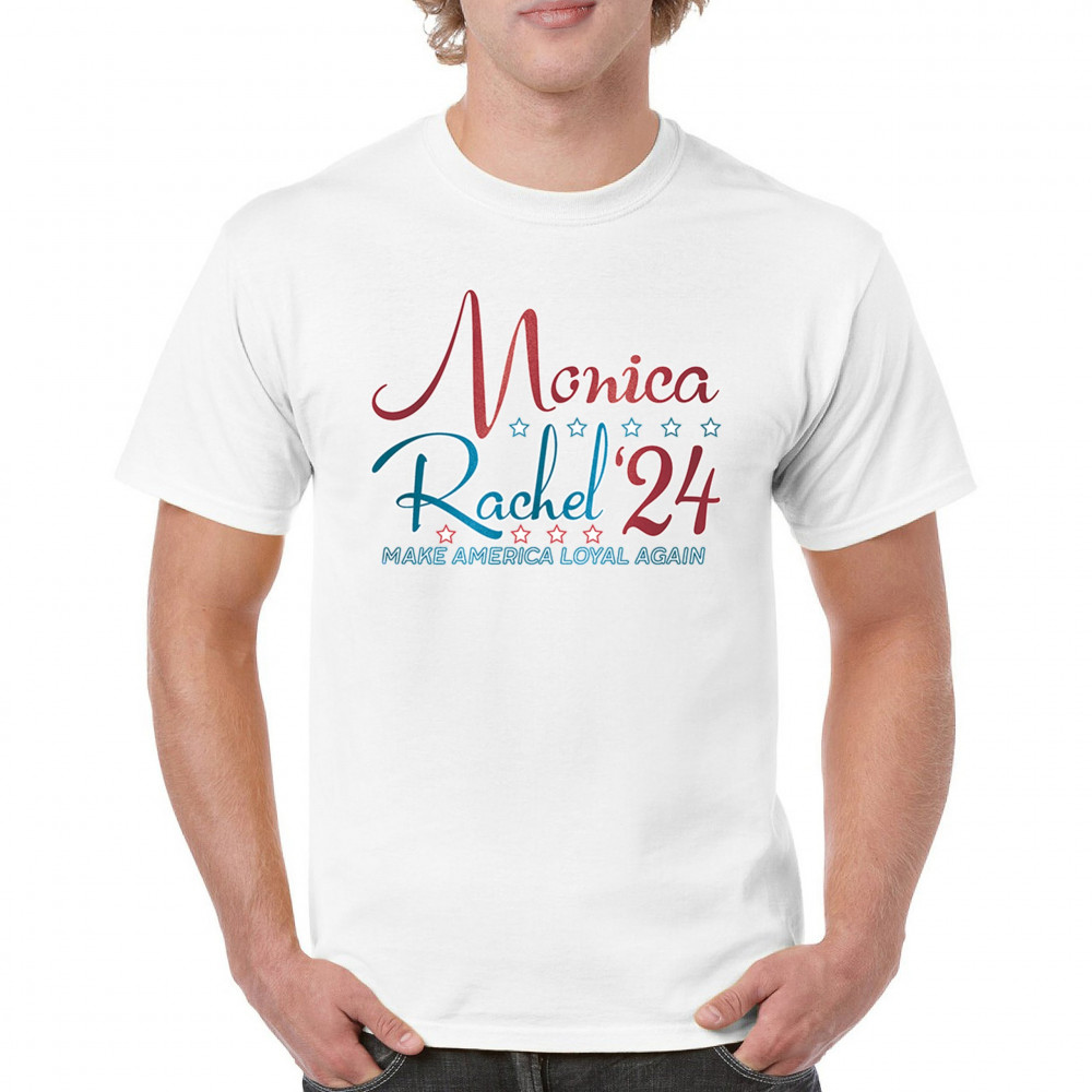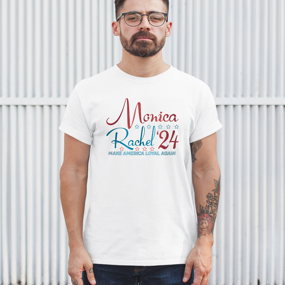 Bring together the nostalgia of "Friends" and the excitement of the upcoming election with this Monica and Rachel '24 design. This shirt is the perfect way to showcase your love for the iconic TV show while keeping the political atmosphere light and fun. Ideal for fans of Rachel and Monica, or anyone who appreciates a good joke, this shirt will have people laughing wherever you go. Wear it proudly and let your style speak volumes without saying a word!