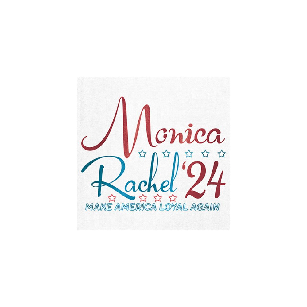 Get ready for the 2024 election with a humorous twist—Monica and Rachel '24! This fun design is perfect for "Friends" fans who love mixing pop culture with politics.