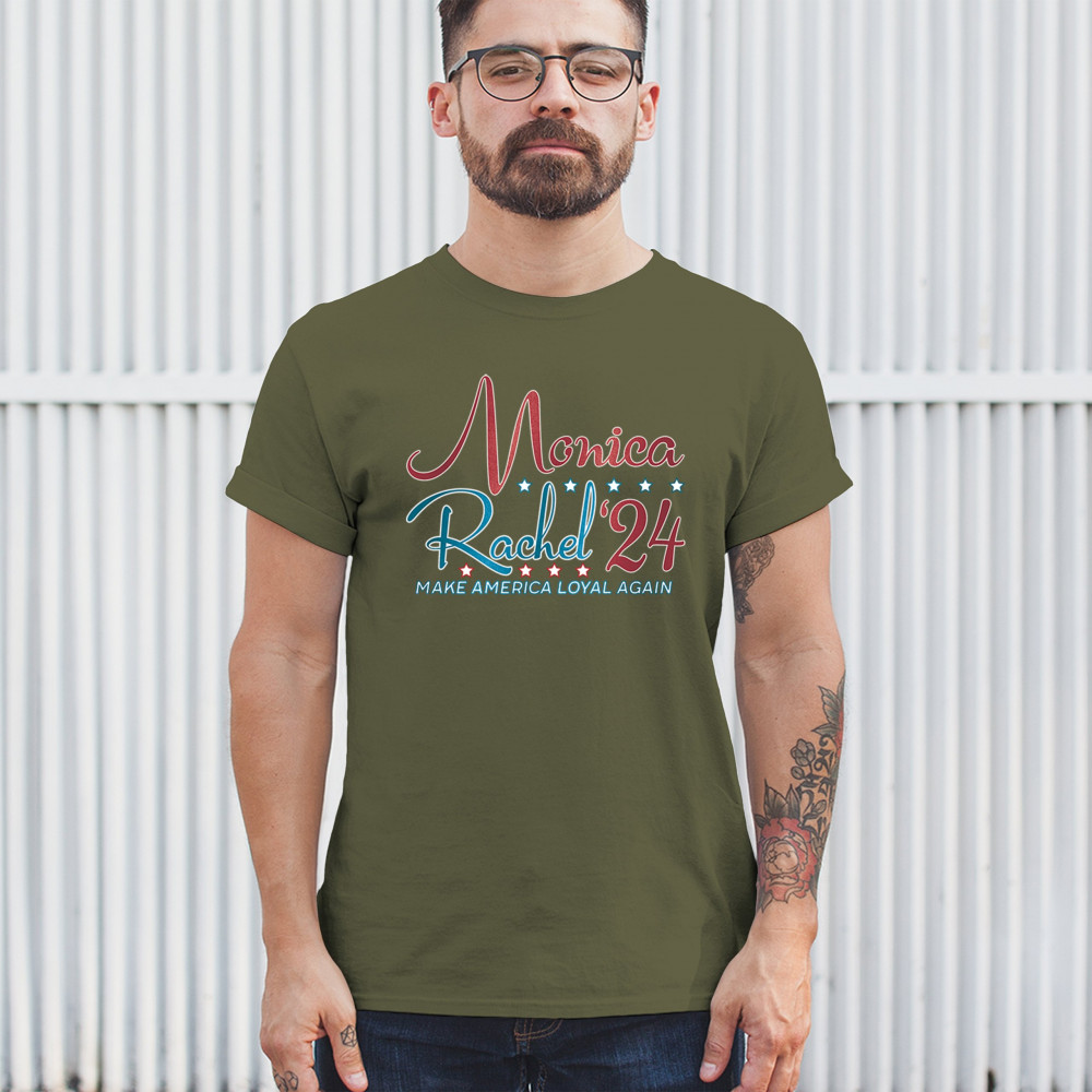 Bring together the nostalgia of "Friends" and the excitement of the upcoming election with this Monica and Rachel '24 design. This shirt is the perfect way to showcase your love for the iconic TV show while keeping the political atmosphere light and fun. Ideal for fans of Rachel and Monica, or anyone who appreciates a good joke, this shirt will have people laughing wherever you go. Wear it proudly and let your style speak volumes without saying a word!
