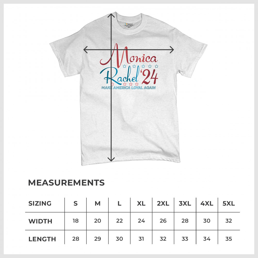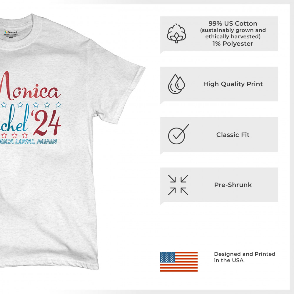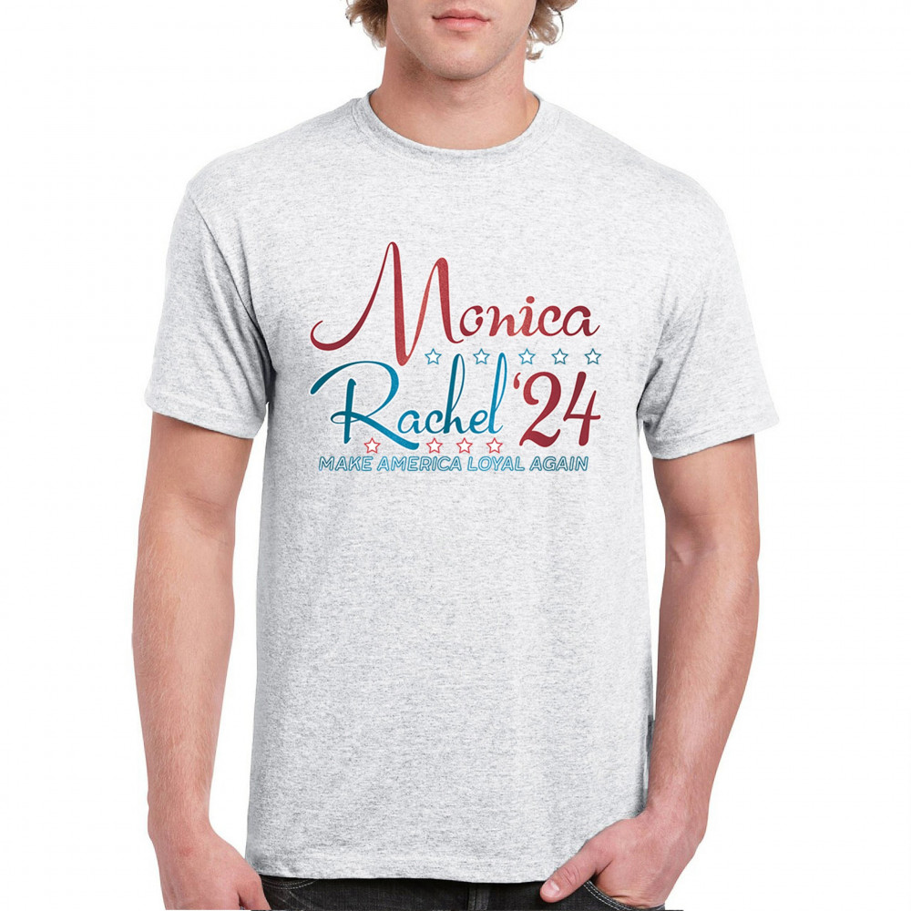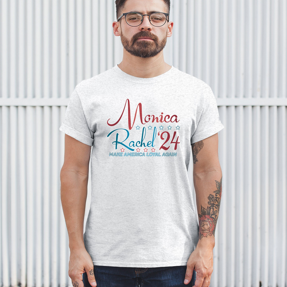 Bring together the nostalgia of "Friends" and the excitement of the upcoming election with this Monica and Rachel '24 design. This shirt is the perfect way to showcase your love for the iconic TV show while keeping the political atmosphere light and fun. Ideal for fans of Rachel and Monica, or anyone who appreciates a good joke, this shirt will have people laughing wherever you go. Wear it proudly and let your style speak volumes without saying a word!