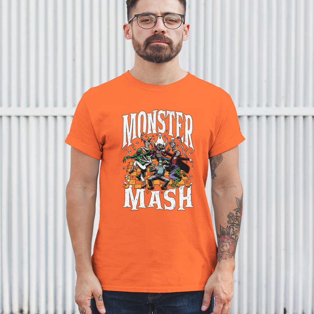 Monster Mash design with creepy costume, pumpkin head, and scary jack o lantern vibes. Perfect for Halloween night, October 31, and parties.