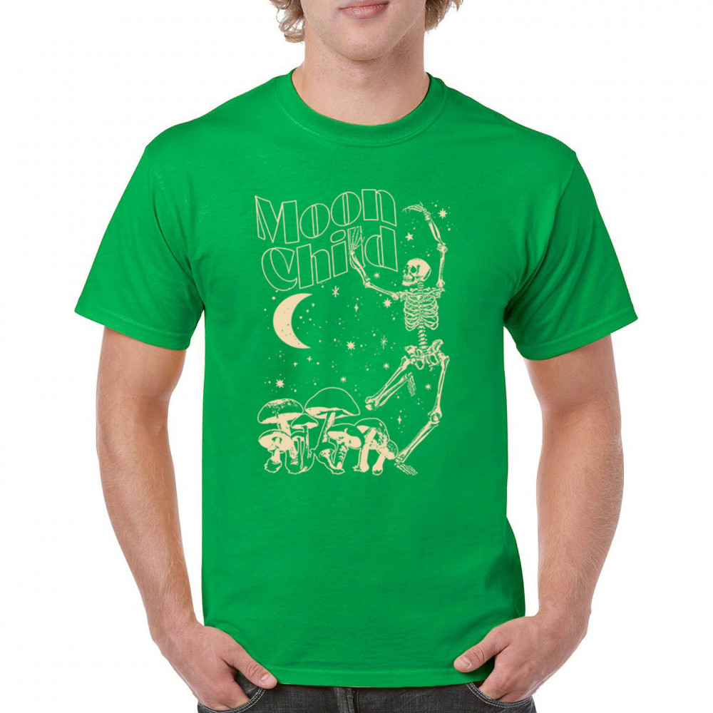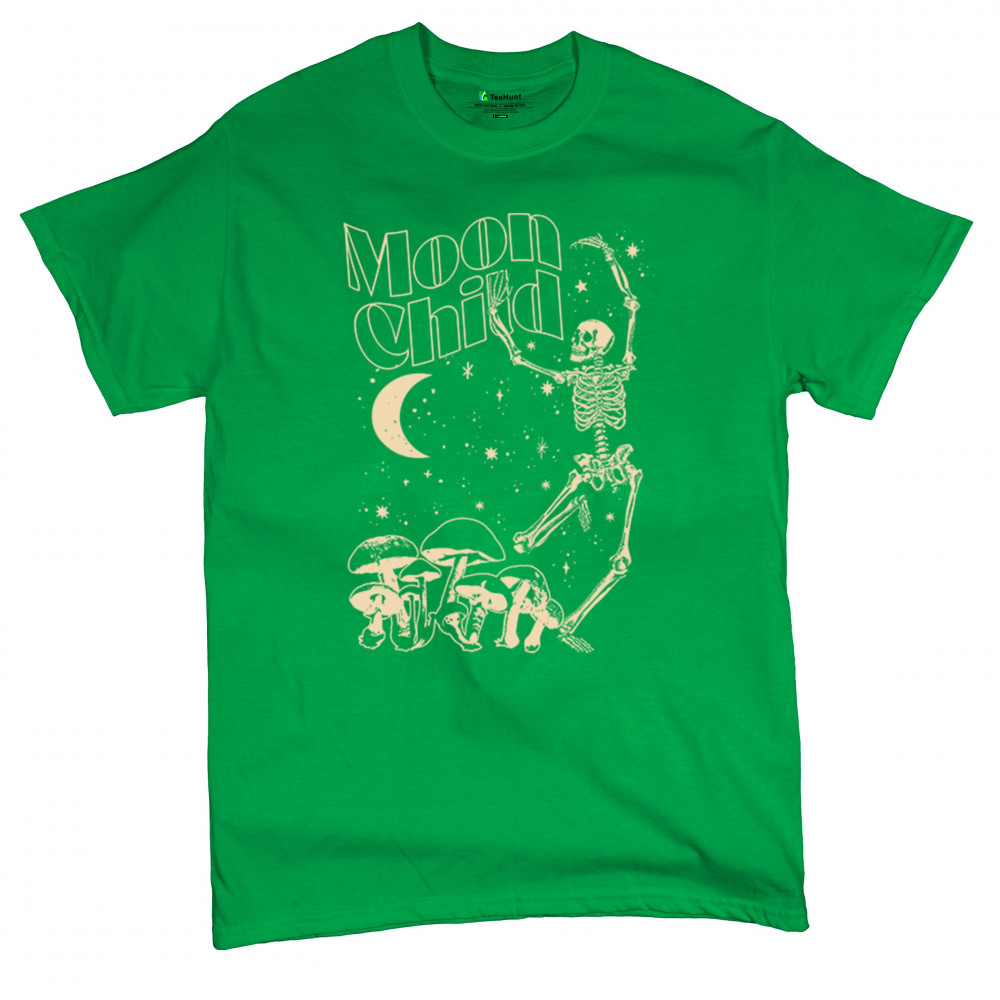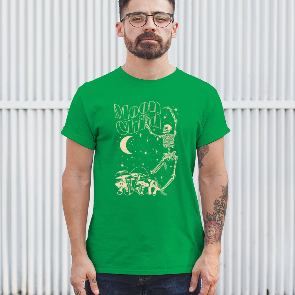 Mystical “Moon Child†design with skeleton, mushrooms, stars, and moon. Retro celestial vibes for dreamers, witches, and free spirits.