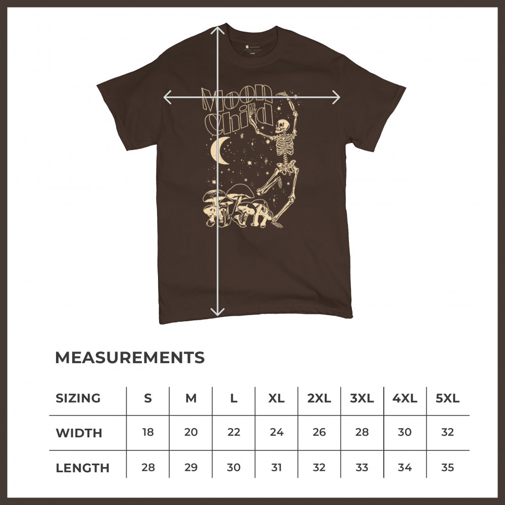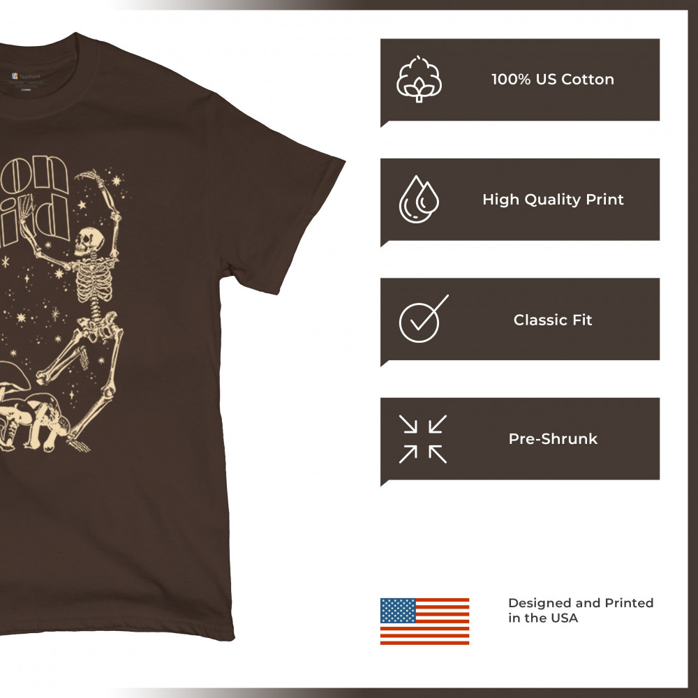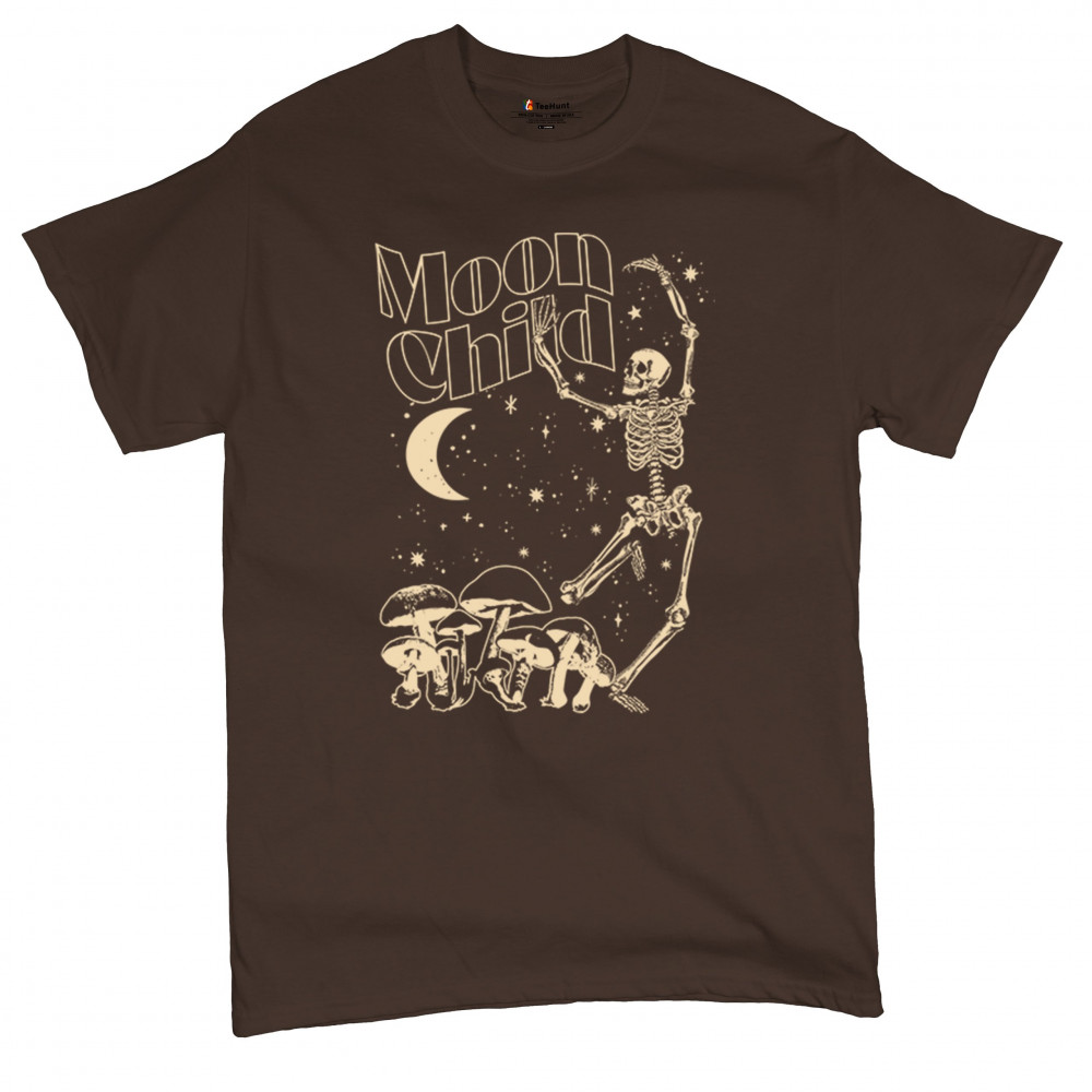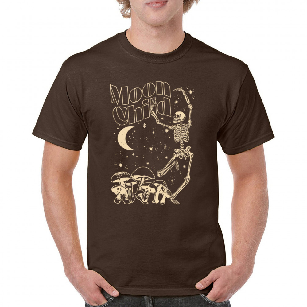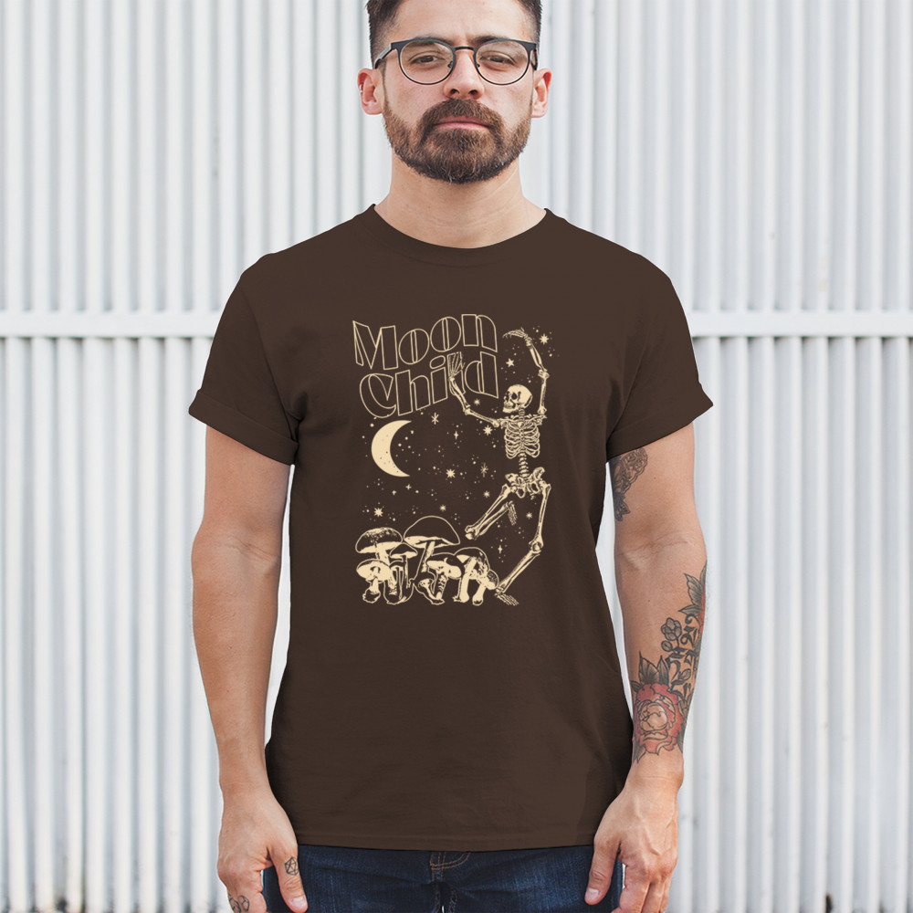 Mystical “Moon Child†design with skeleton, mushrooms, stars, and moon. Retro celestial vibes for dreamers, witches, and free spirits.