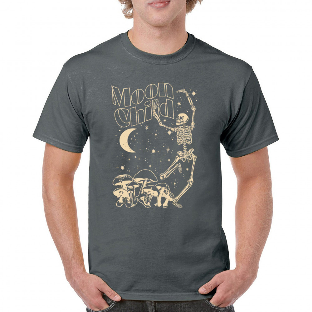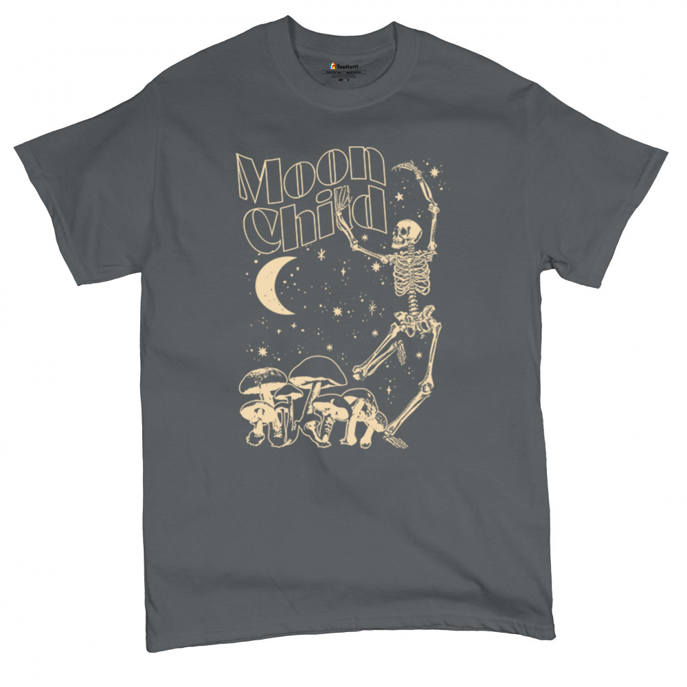 Mystical “Moon Child†design with skeleton, mushrooms, stars, and moon. Retro celestial vibes for dreamers, witches, and free spirits.