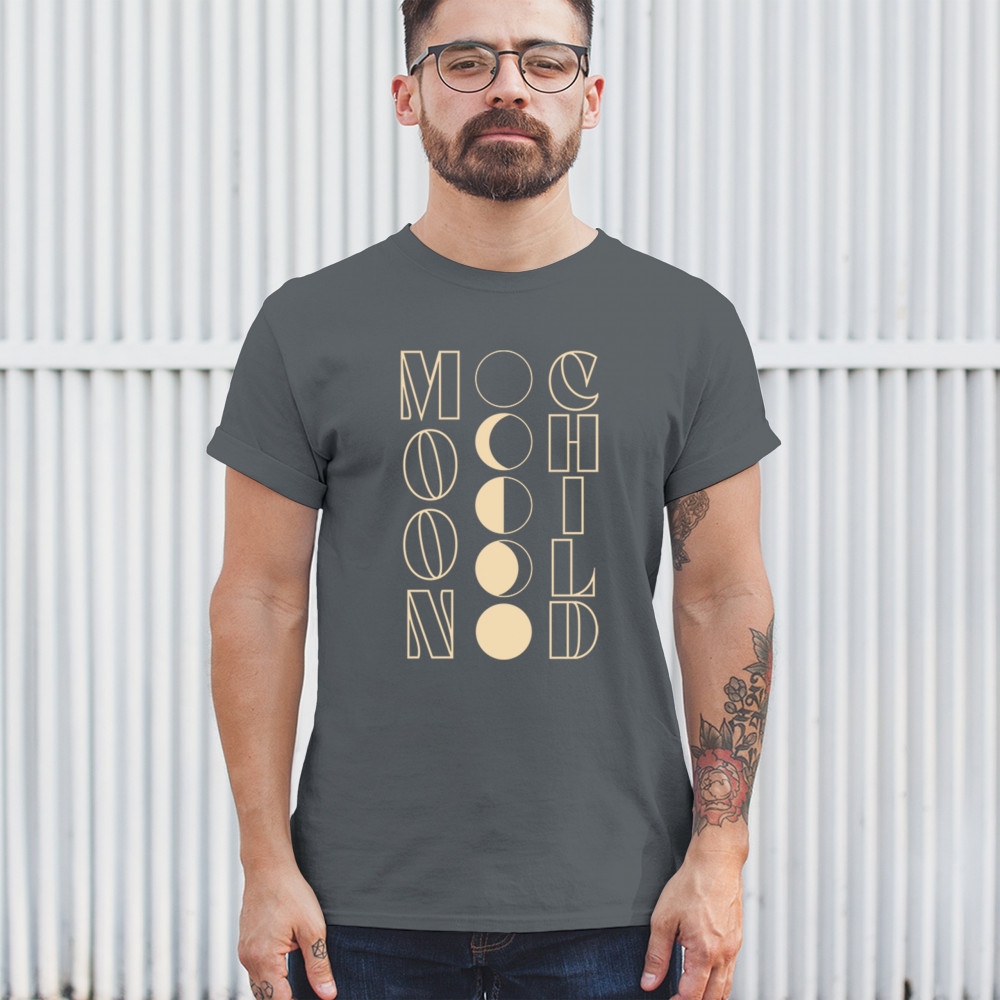 Explore the 'Moon Child' design, showcasing moon phases in minimalist style. Perfect for space lovers, it's a unique, comfortable piece ideal for any occasion.
