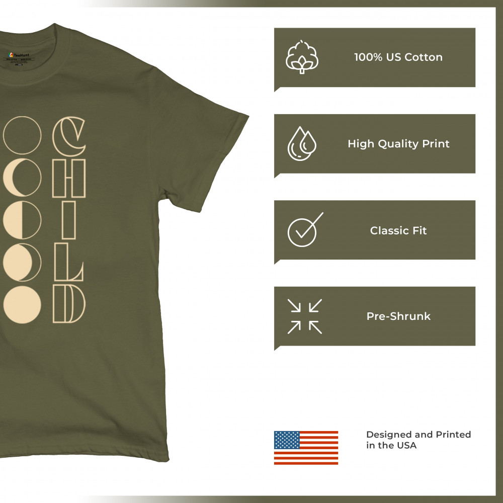 Explore the 'Moon Child' design, showcasing moon phases in minimalist style. Perfect for space lovers, it's a unique, comfortable piece ideal for any occasion.