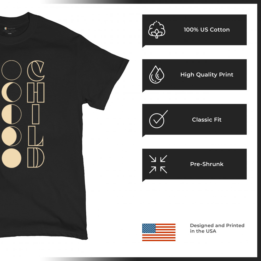 Discover the allure of the cosmos with our 'Moon Child' design, featuring a minimalist representation of the moon phases. This design is perfect for those who have a deep appreciation for space and astronomy, offering a stylish way to showcase your celestial connection. Made with high-quality materials, it ensures long-lasting wear and comfort. Whether you're dressing for a casual day out or a special event, this piece adds a touch of mystique to any outfit. It also makes a fantastic gift for friends and family who love all things lunar and astrological.