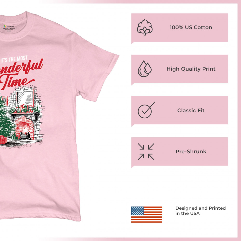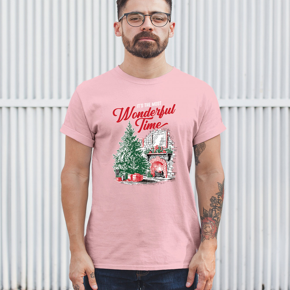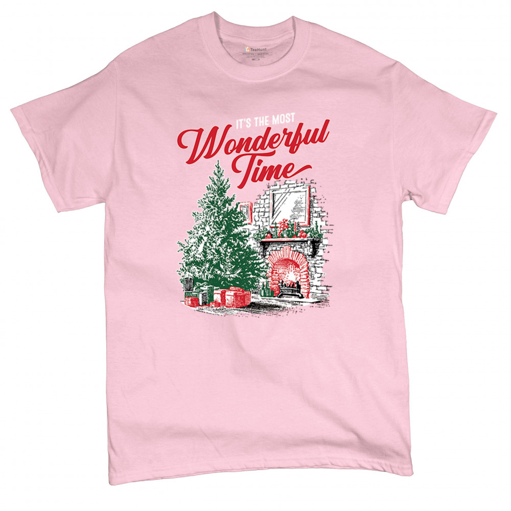 Make your holidays brighter with this “Most Wonderful Time†Christmas design, featuring a glowing fireplace, festive living room, and decorated Christmas tree. This cozy Christmas shirt combines holiday home decor style with classic Merry Xmas charm. Perfect for those who love Santa Claus, Rudolph, reindeer, Let It Snow vibes, and cheerful holiday fashion.