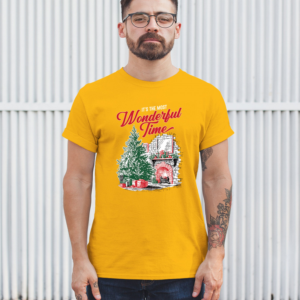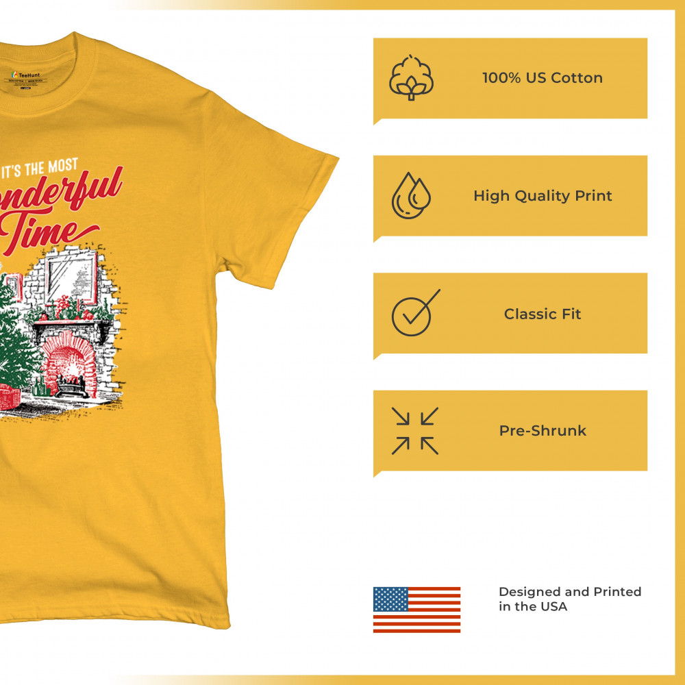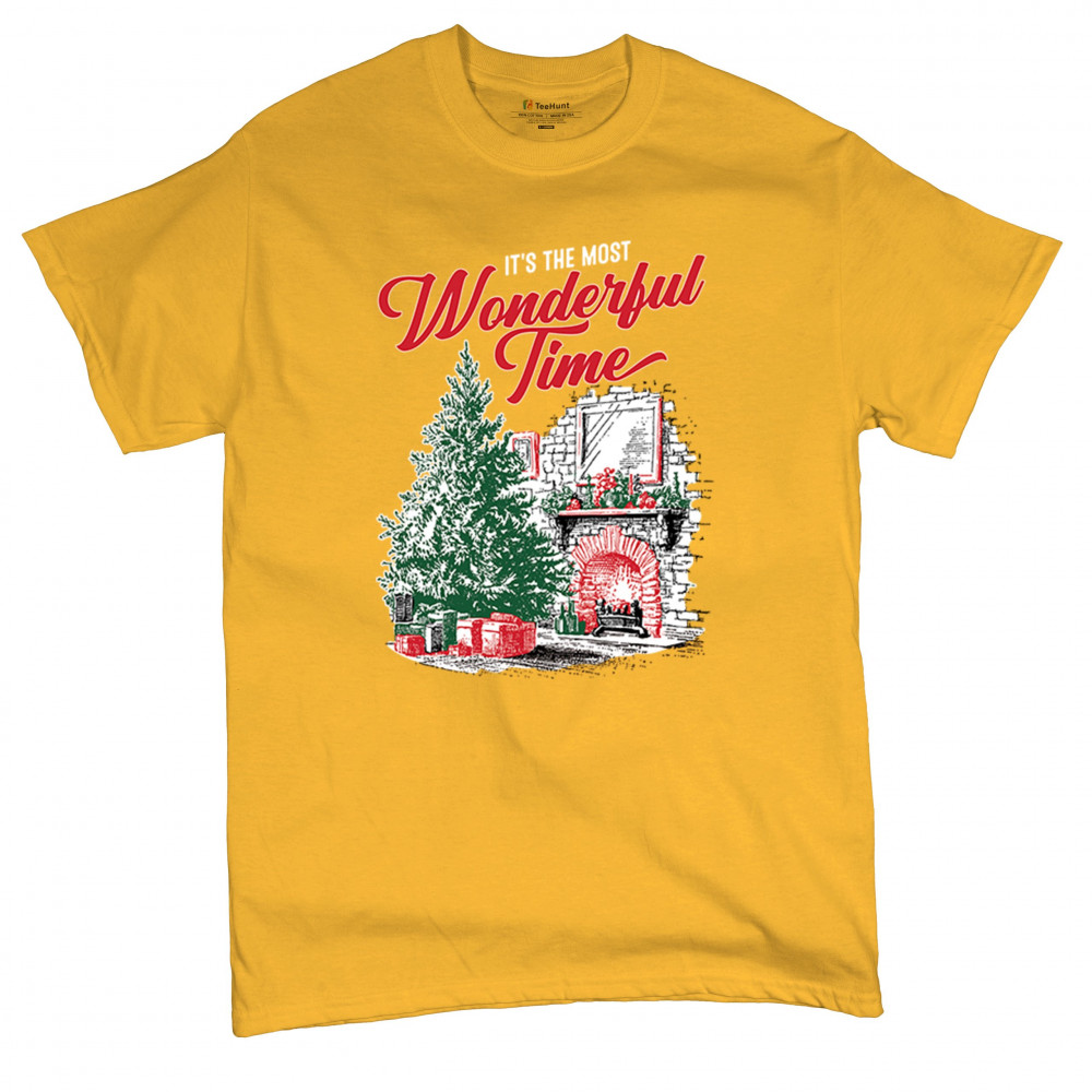 Make your holidays brighter with this “Most Wonderful Time†Christmas design, featuring a glowing fireplace, festive living room, and decorated Christmas tree. This cozy Christmas shirt combines holiday home decor style with classic Merry Xmas charm. Perfect for those who love Santa Claus, Rudolph, reindeer, Let It Snow vibes, and cheerful holiday fashion.