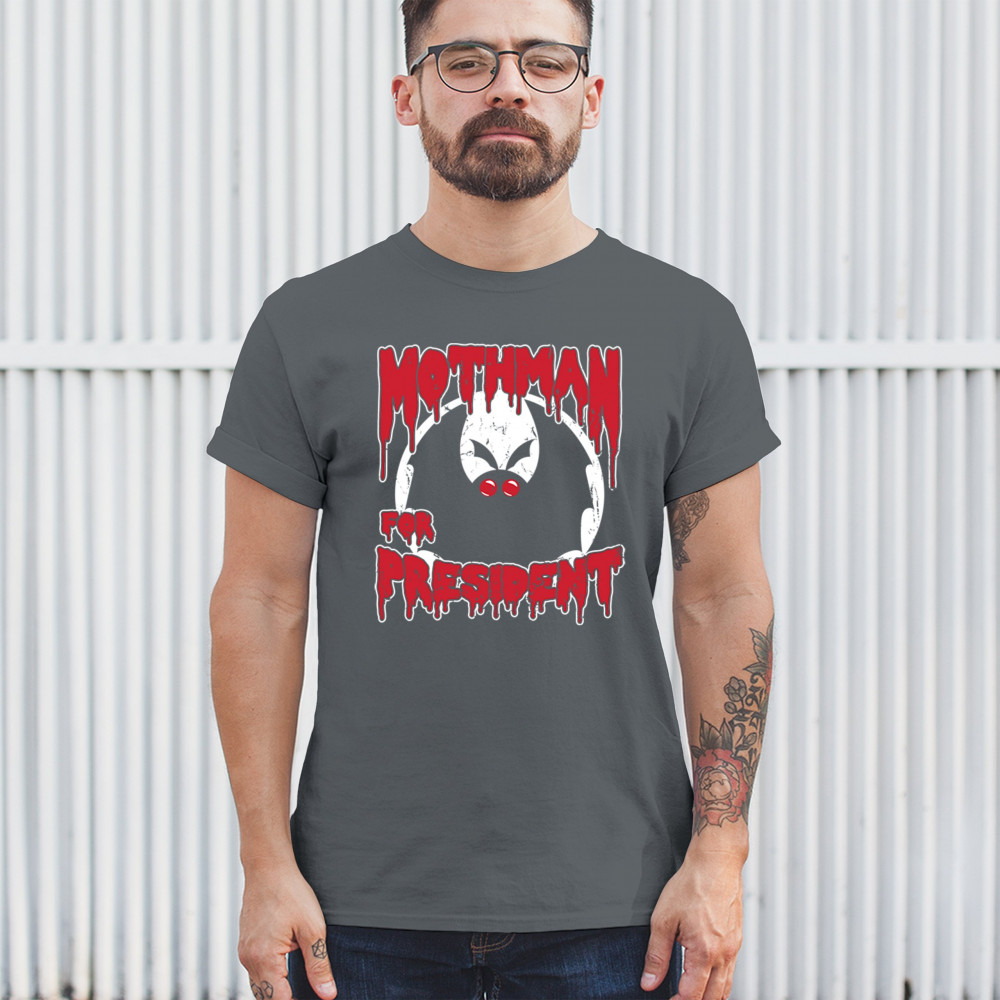 Get the "Mothman for President" shirt, blending political satire with cryptid humor. Perfect for fans of Mothman and political comedy. Durable and comfy!