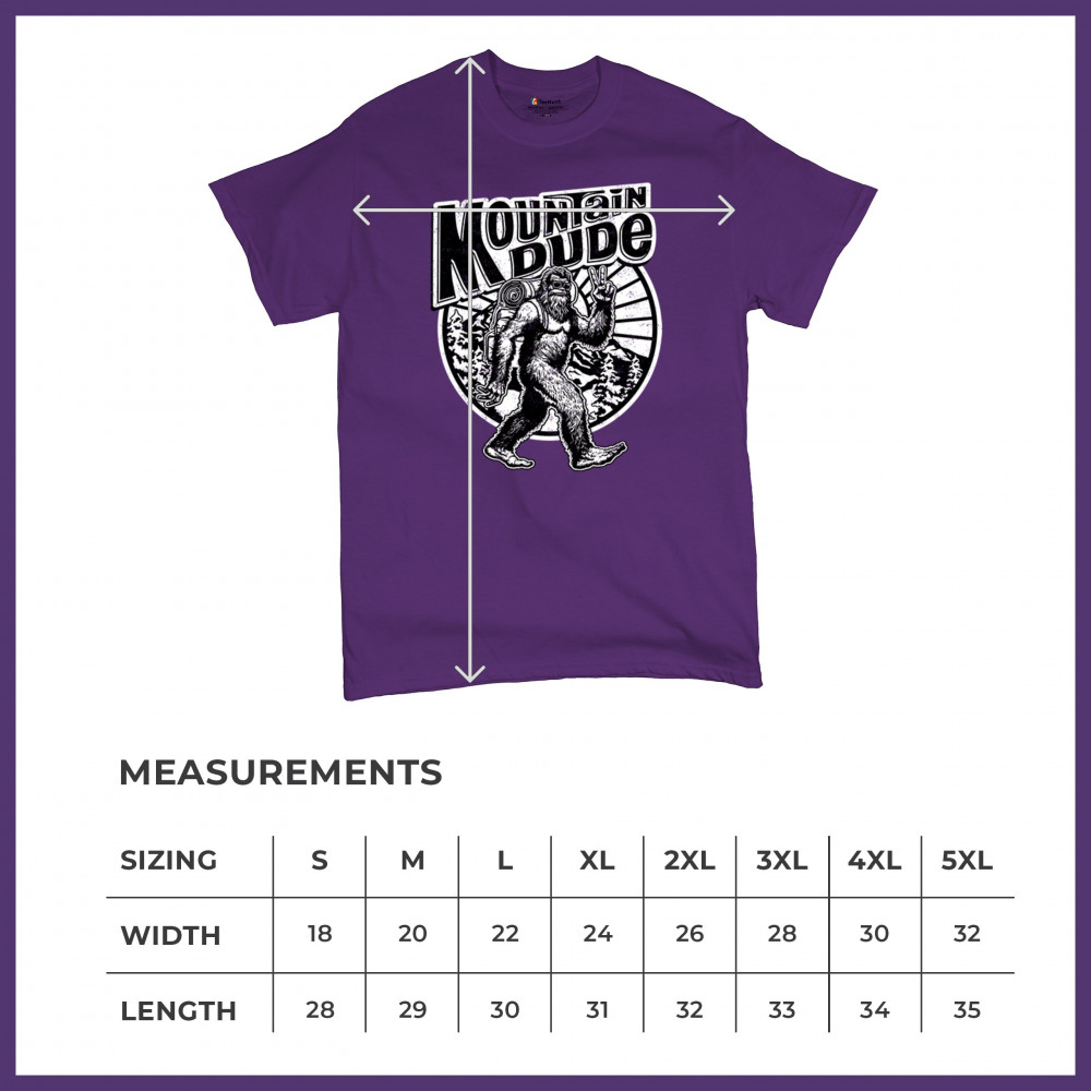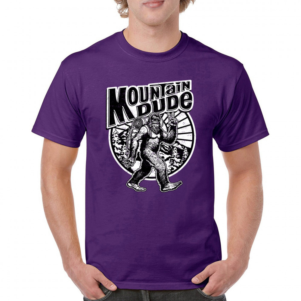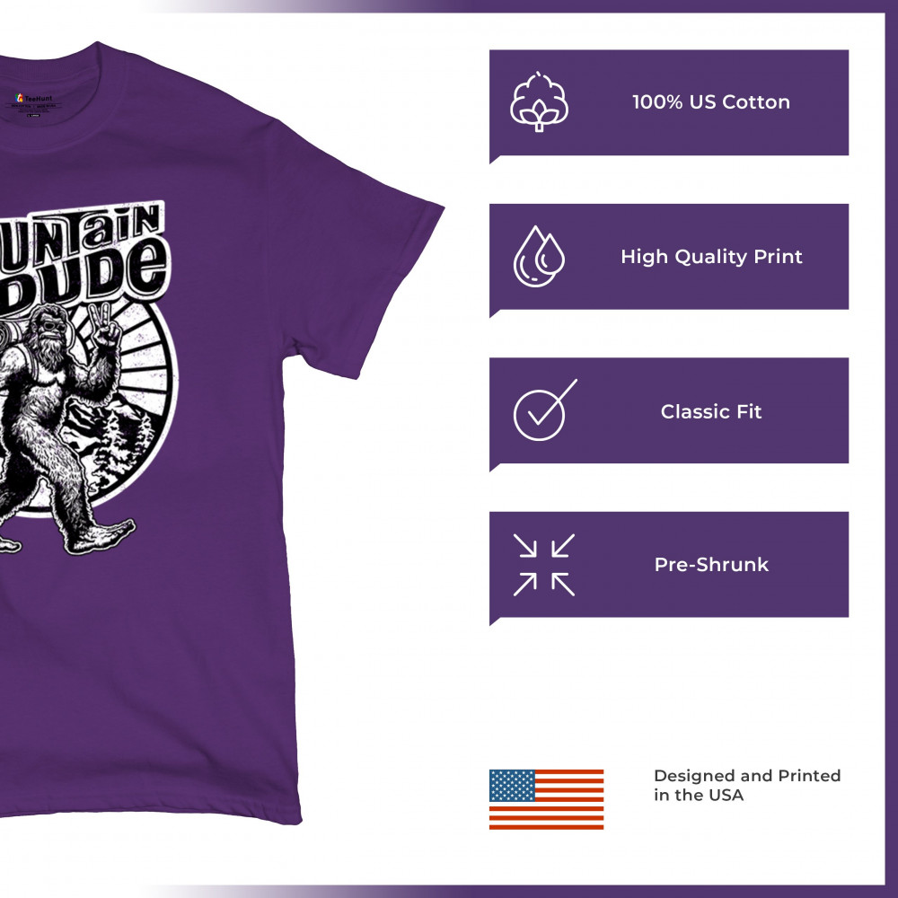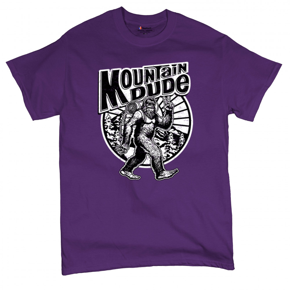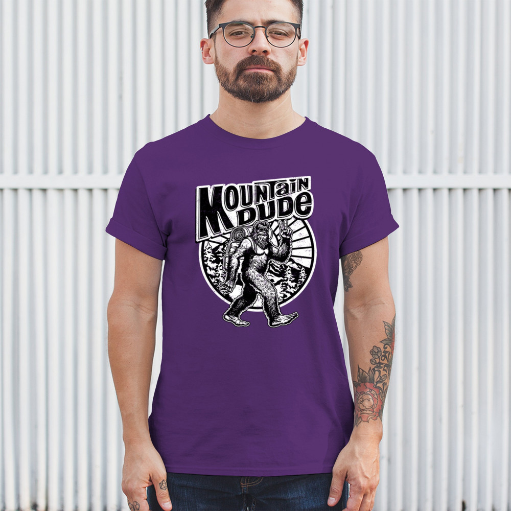 Celebrate outdoor adventures with the "Mountain Dude" design, featuring Sasquatch and mountain scenery. Perfect for hikers, campers, and Bigfoot fans.