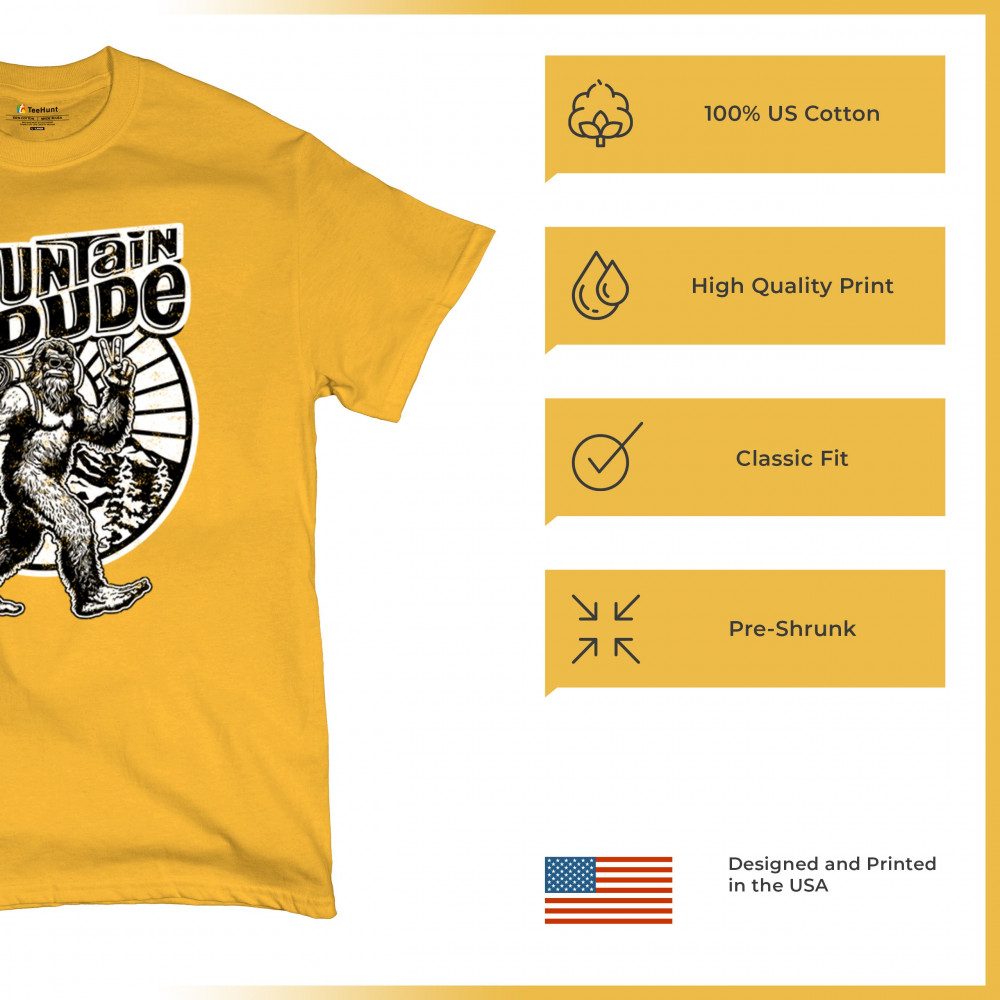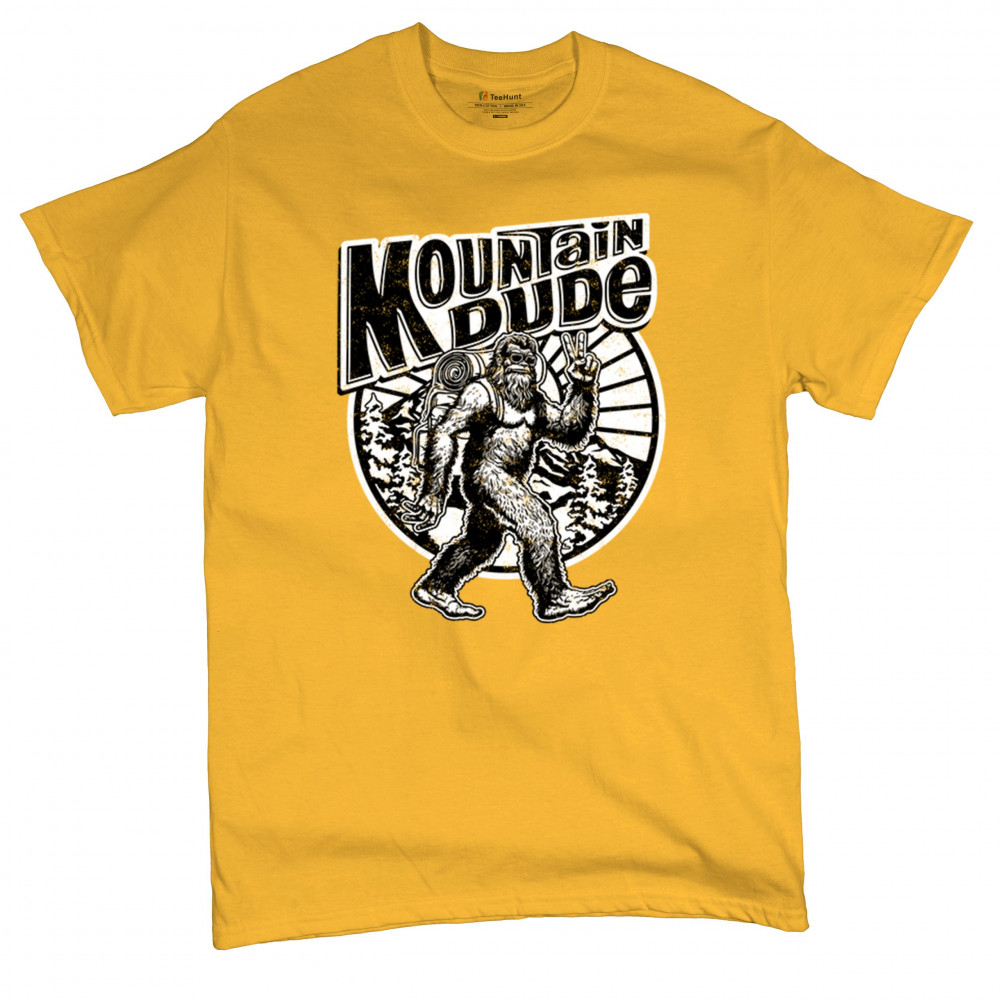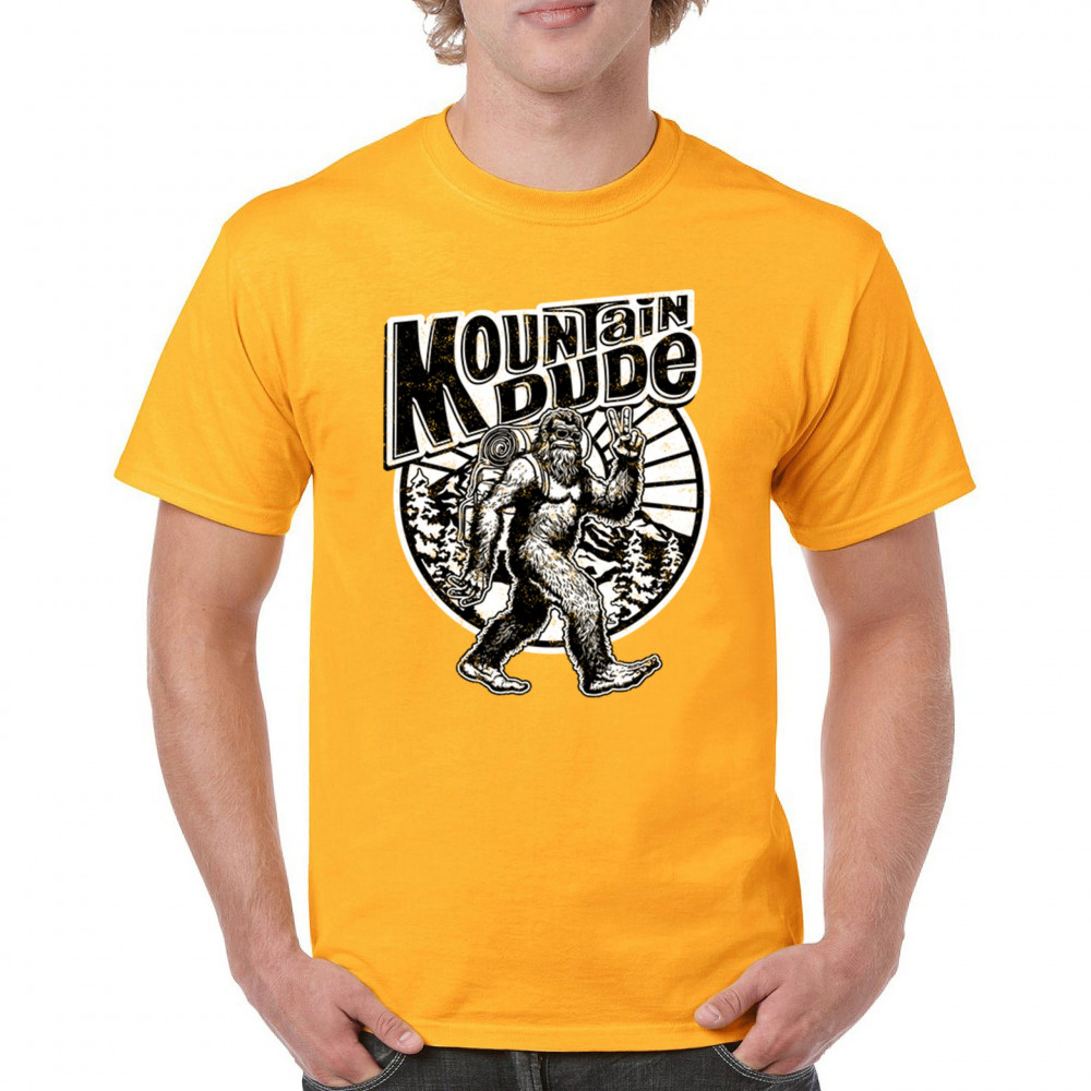 Celebrate outdoor adventures with the "Mountain Dude" design, featuring Sasquatch and mountain scenery. Perfect for hikers, campers, and Bigfoot fans.