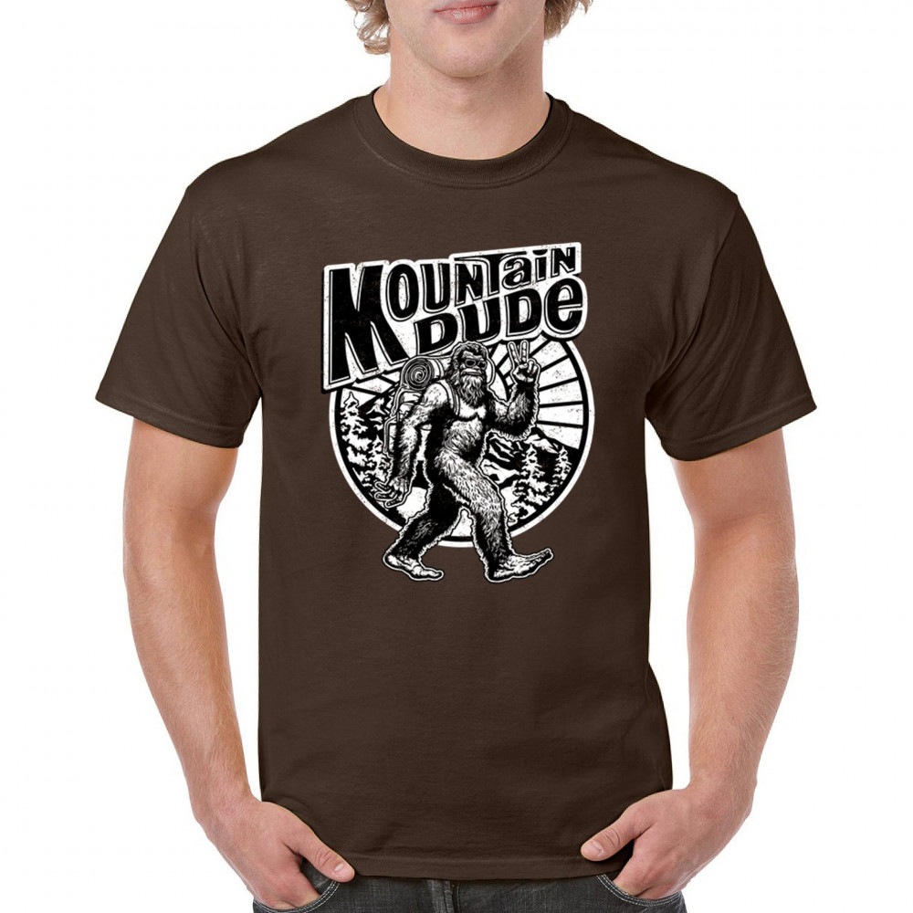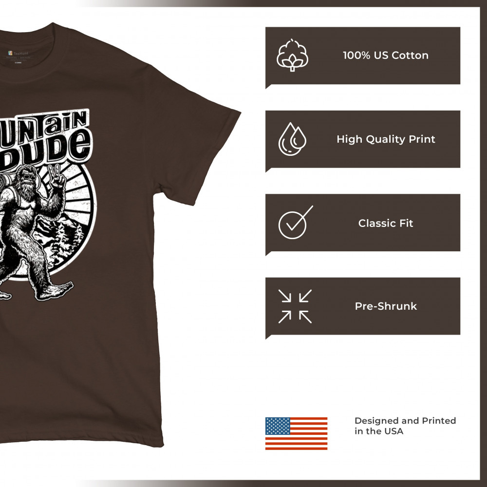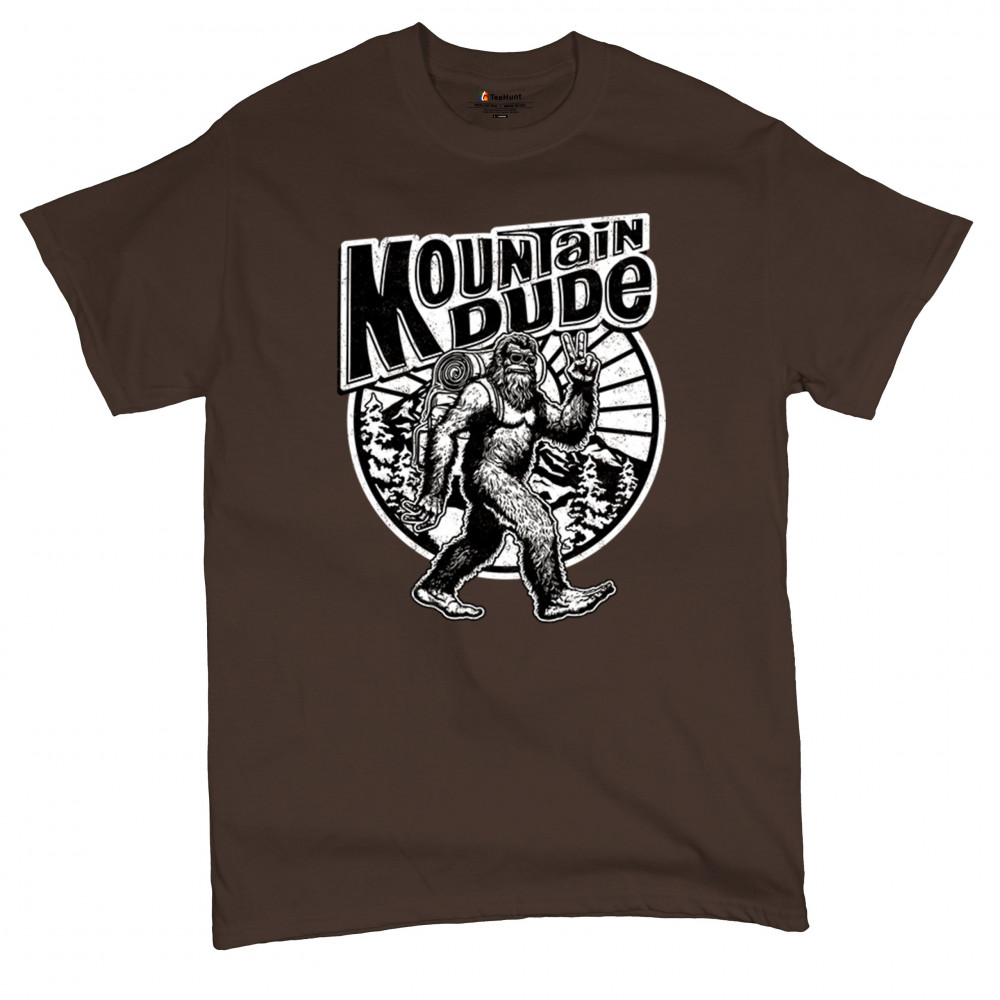 Celebrate outdoor adventures with the "Mountain Dude" design, featuring Sasquatch and mountain scenery. Perfect for hikers, campers, and Bigfoot fans.