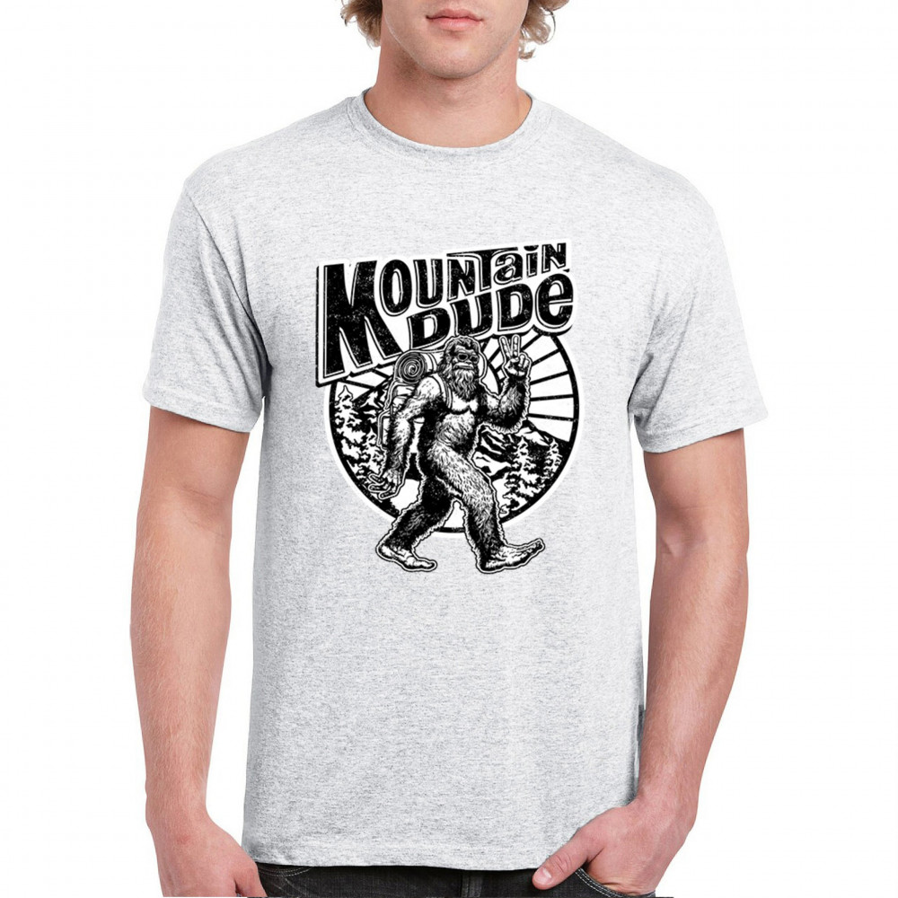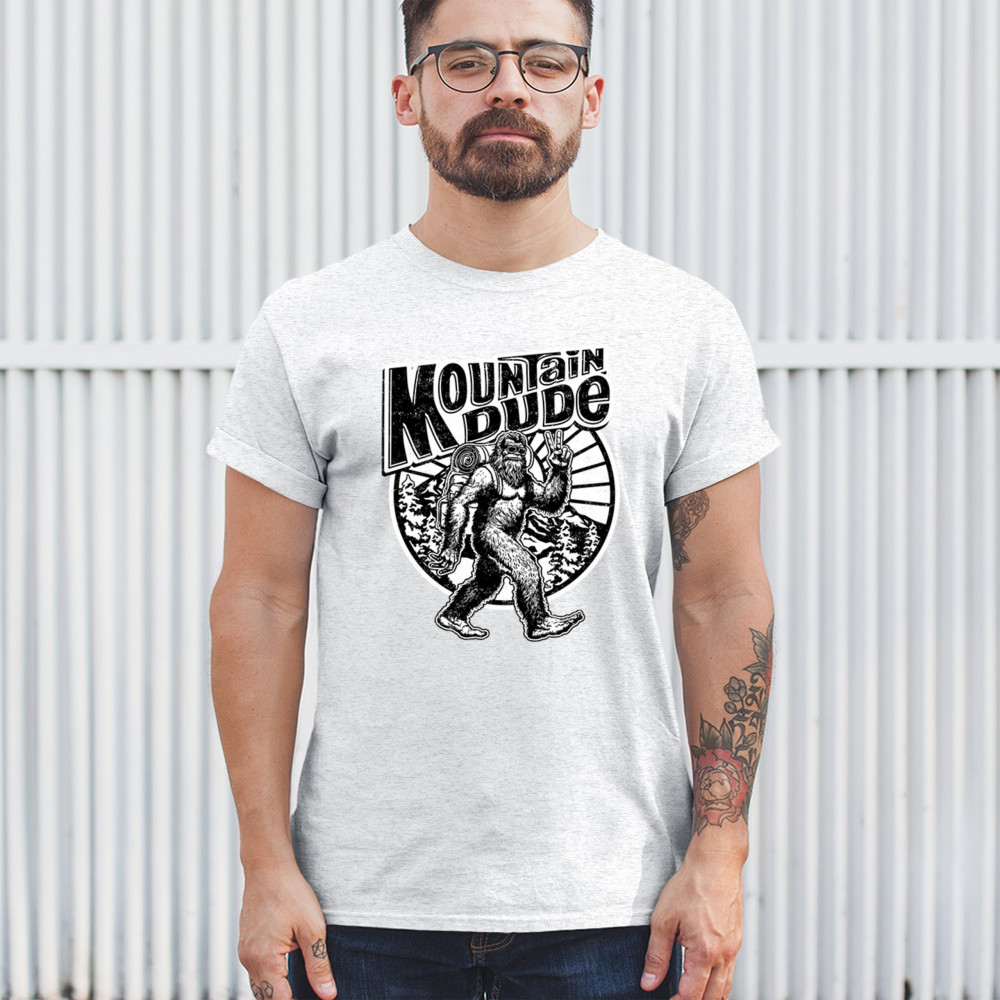 Celebrate outdoor adventures with the "Mountain Dude" design, featuring Sasquatch and mountain scenery. Perfect for hikers, campers, and Bigfoot fans.