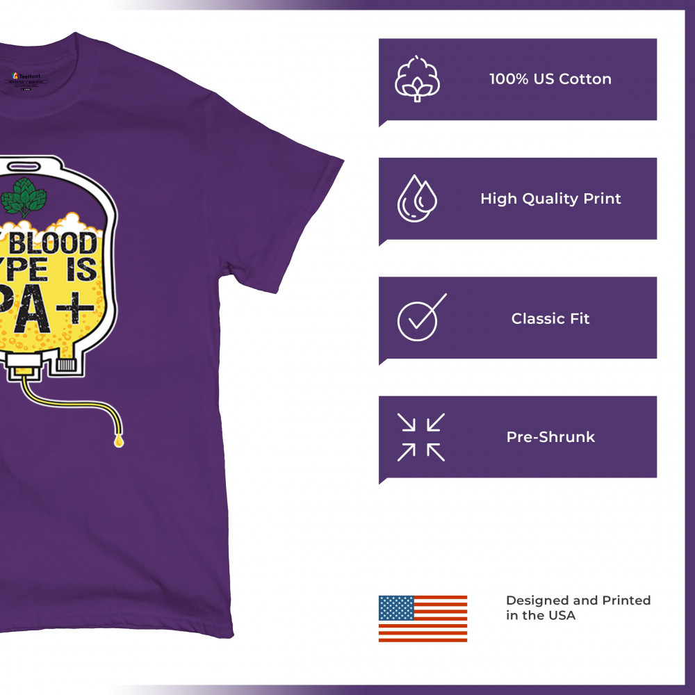 Bold and hilarious, this “My Blood Type Is IPA+†design features a dripping blood bag filled with frothy craft beer. The detailed hops and beer foam artwork make it perfect for IPA snobs, brew bros, and connoisseurs. Whether at a pub crawl or your local brewery, show your blood runs IPA with this standout design for beer lovers, hop heads, and festival fans.