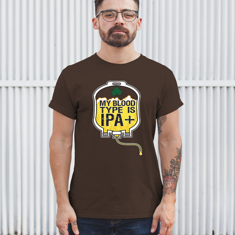 Bold and hilarious, this “My Blood Type Is IPA+†design features a dripping blood bag filled with frothy craft beer. The detailed hops and beer foam artwork make it perfect for IPA snobs, brew bros, and connoisseurs. Whether at a pub crawl or your local brewery, show your blood runs IPA with this standout design for beer lovers, hop heads, and festival fans.