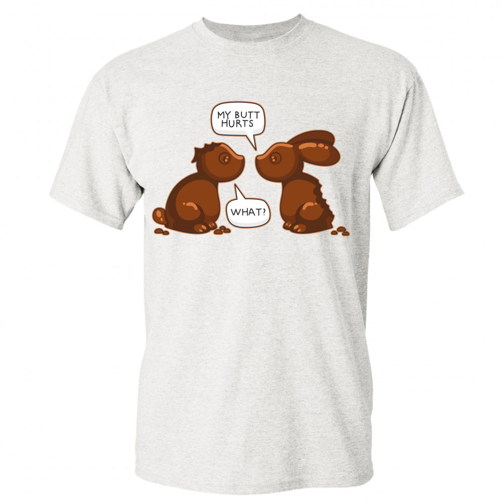 MY BUTT HURTS - WHAT? t-shirt chocolate bunnies easter rabbits men's tee ash gray