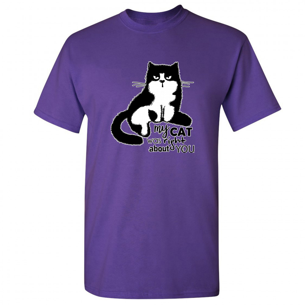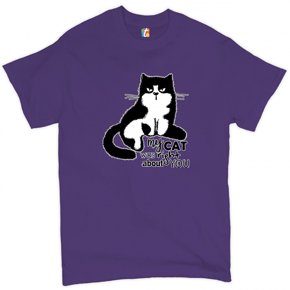 MY CAT WAS RIGHT ABOUT YOU t-shirt cat lover funny kitty kitten men's tee purple