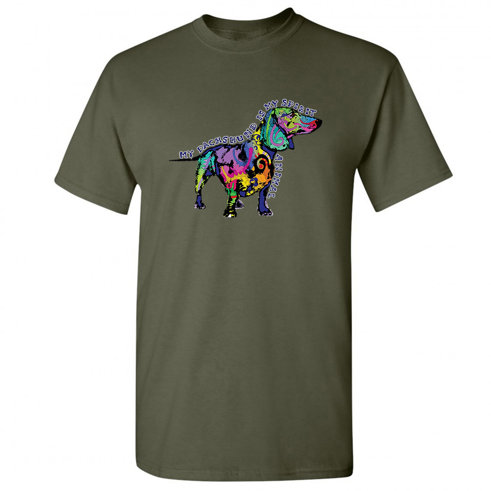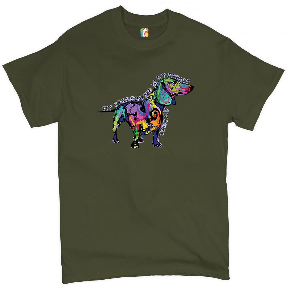 MY DACHSHUND IS MY SPIRIT ANIMAL t-shirt cute puppy dog lover men's tee military green